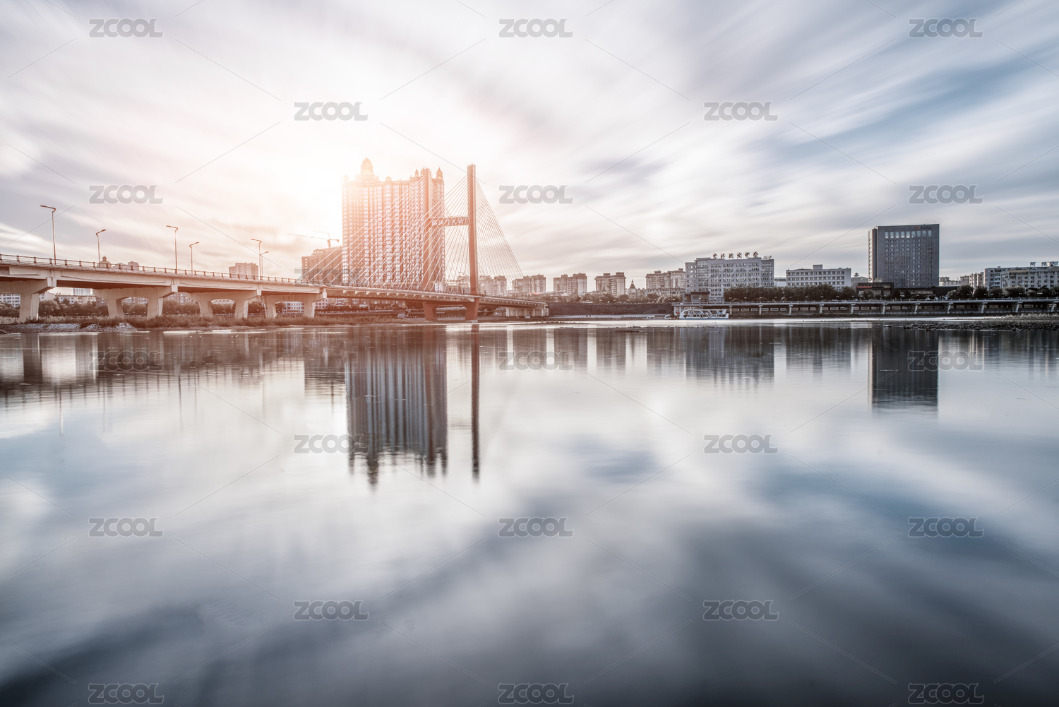 江畔城市吉林的黄昏