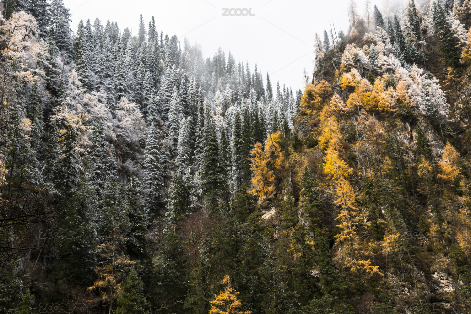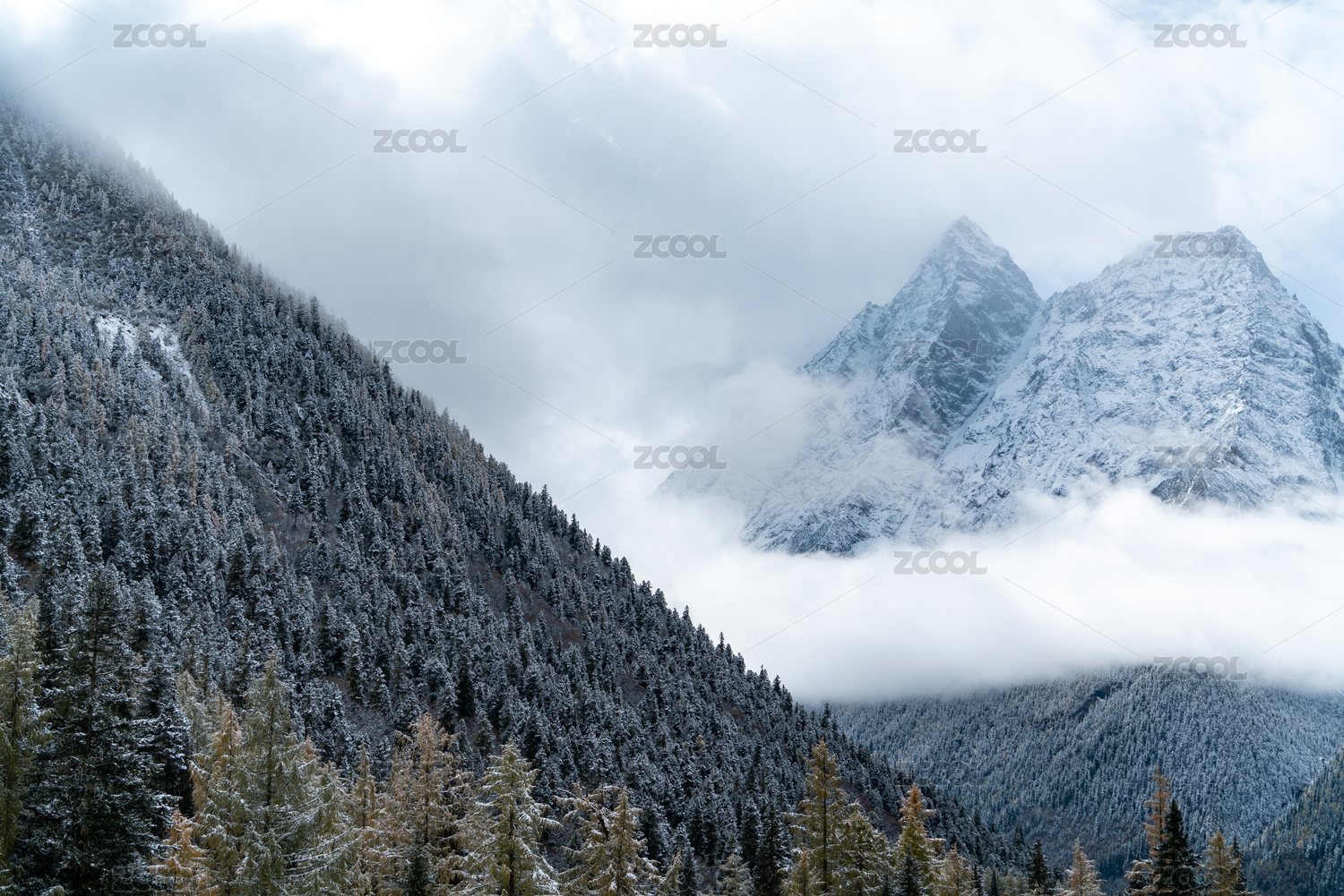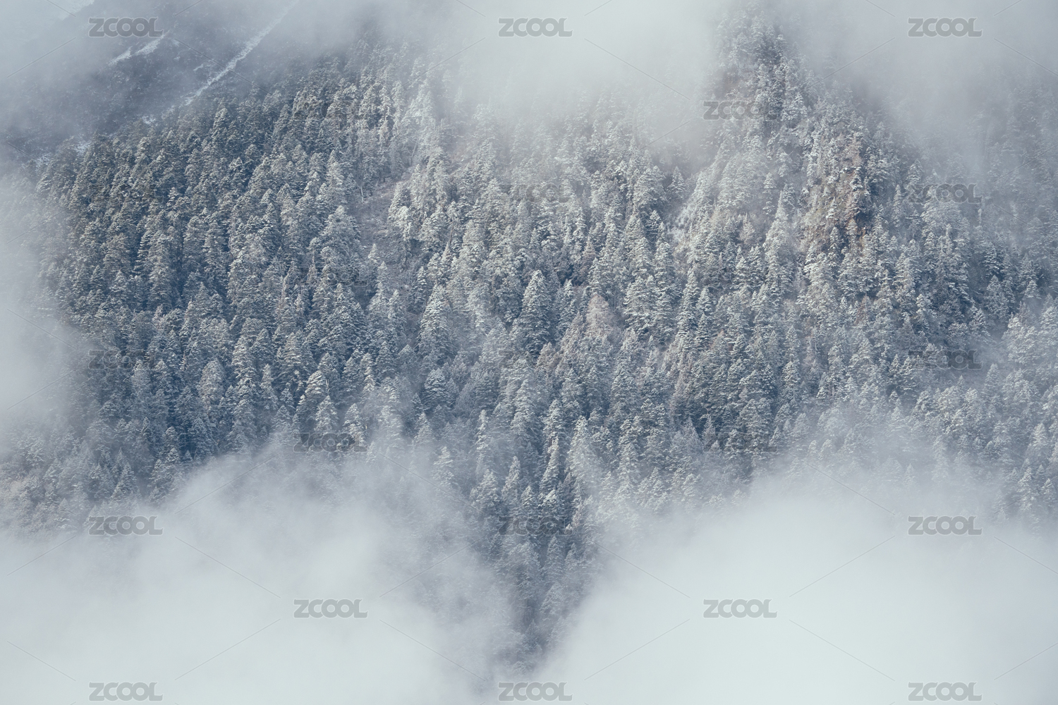 中国四川西部阿坝旅游景区鹧鸪山积雪的冬天