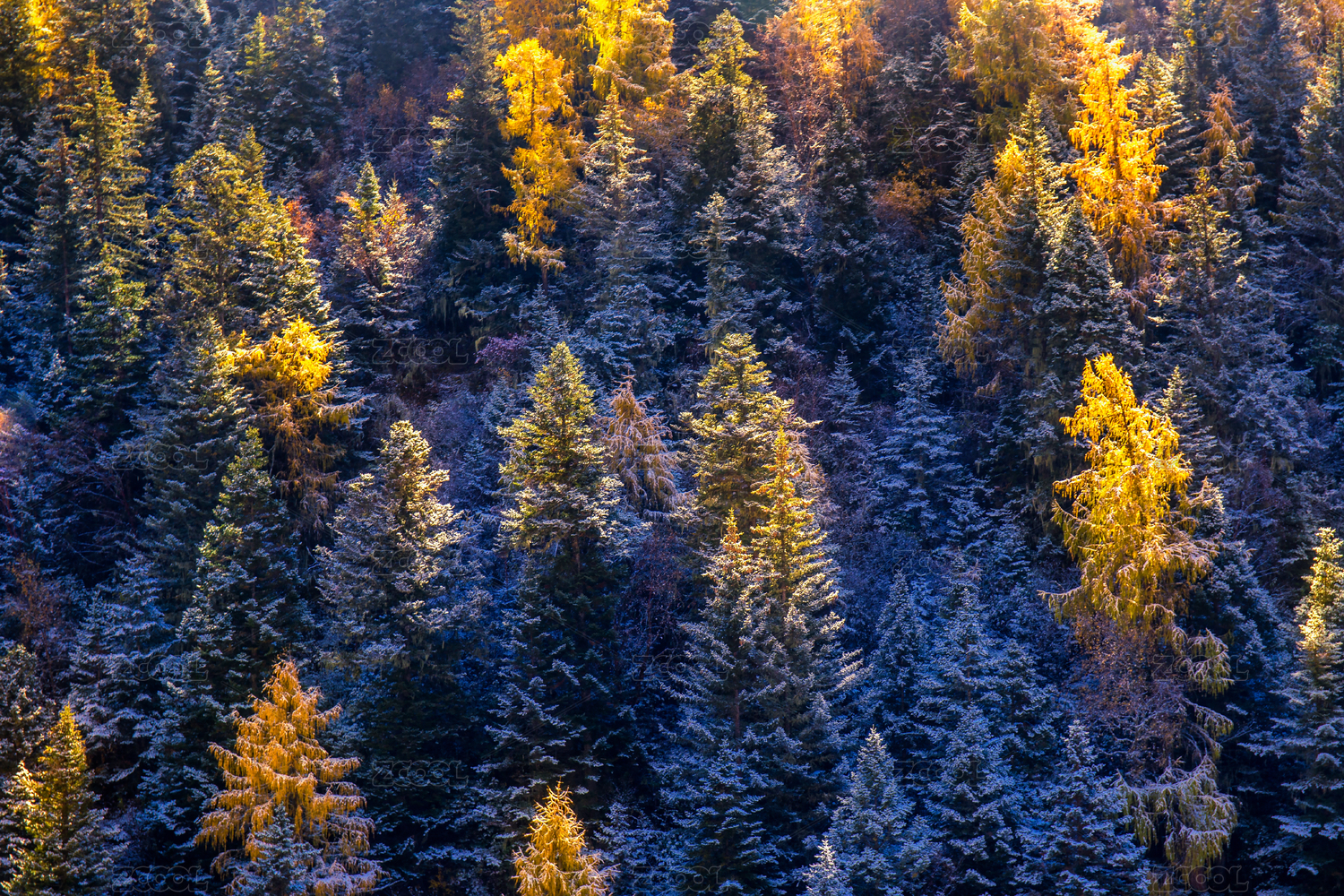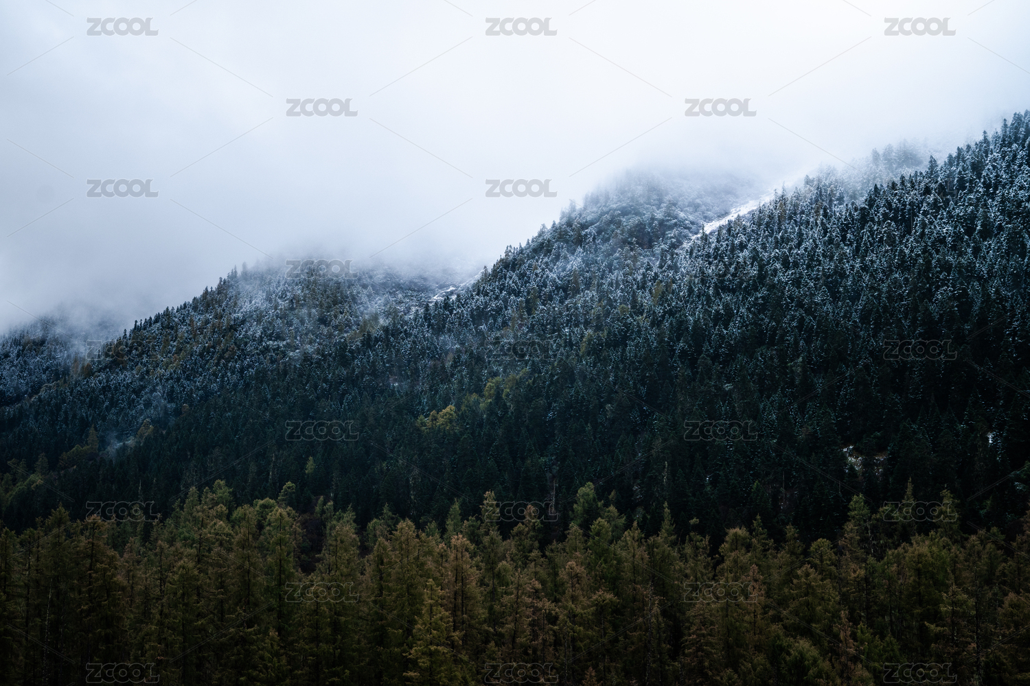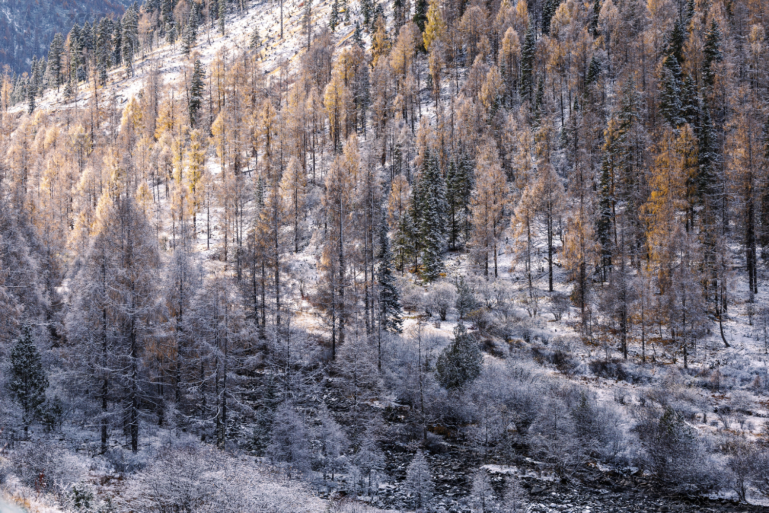 中国四川西部阿坝旅游景区鹧鸪山积雪的冬天