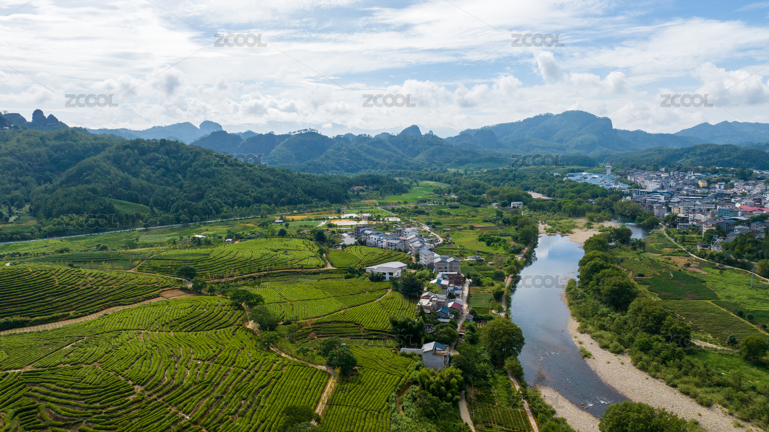 航拍武夷山绿色茶山茶园 优质大红袍产区