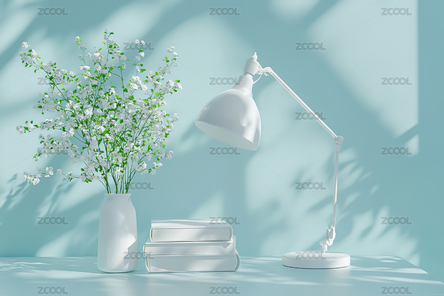 简约蓝色书桌摆设