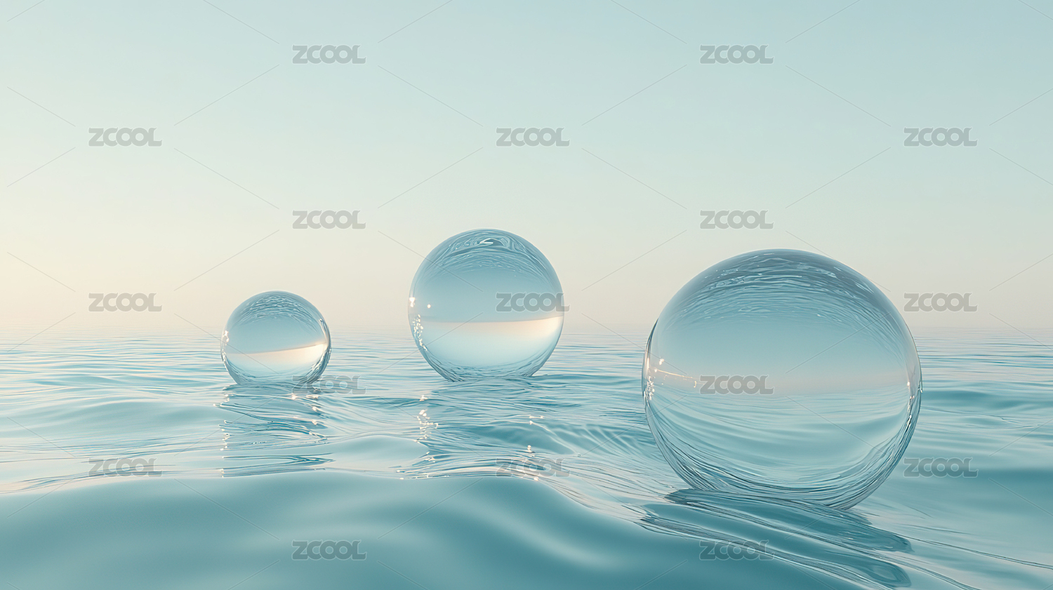 水面上的透明水晶球