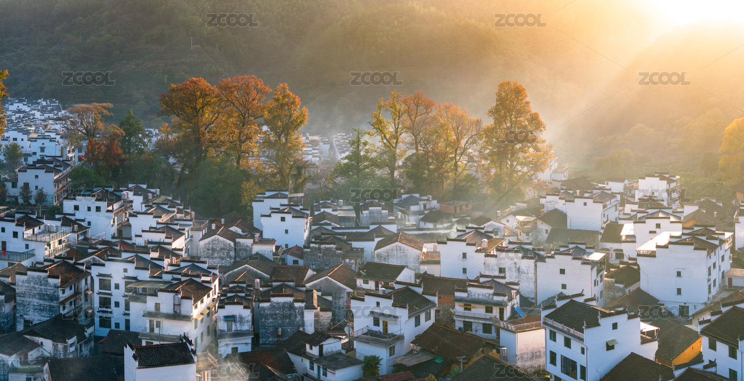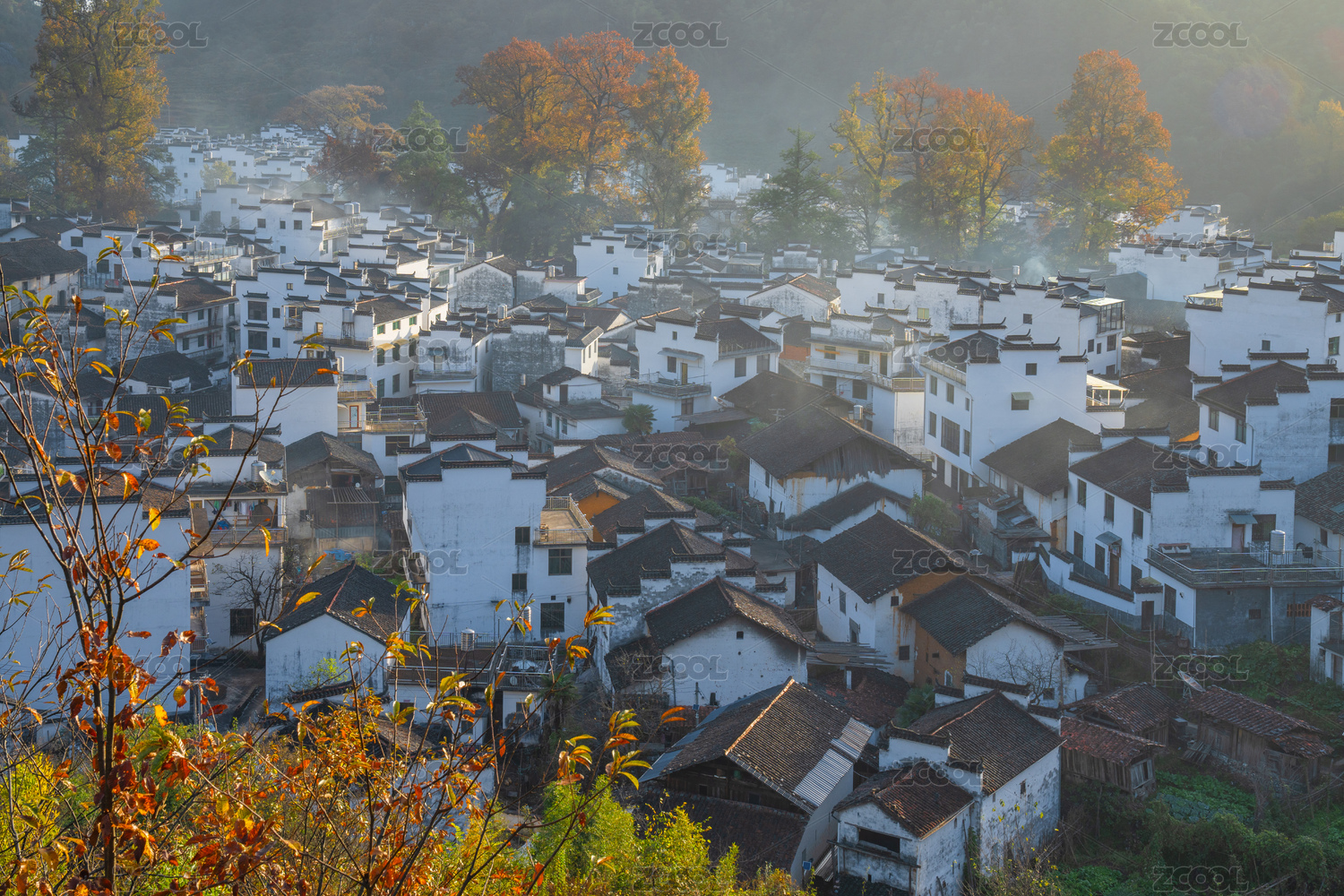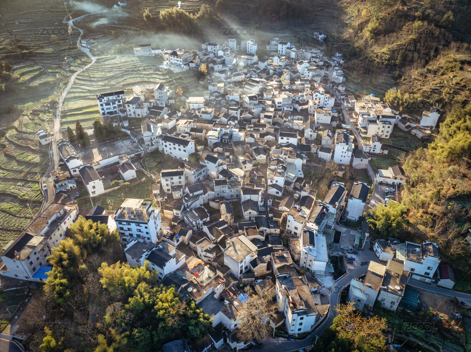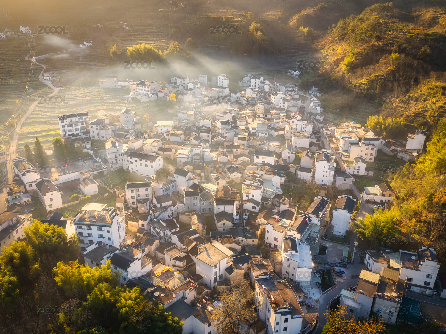 安徽 婺源 石城 清晨 烟雾 宁静 民居