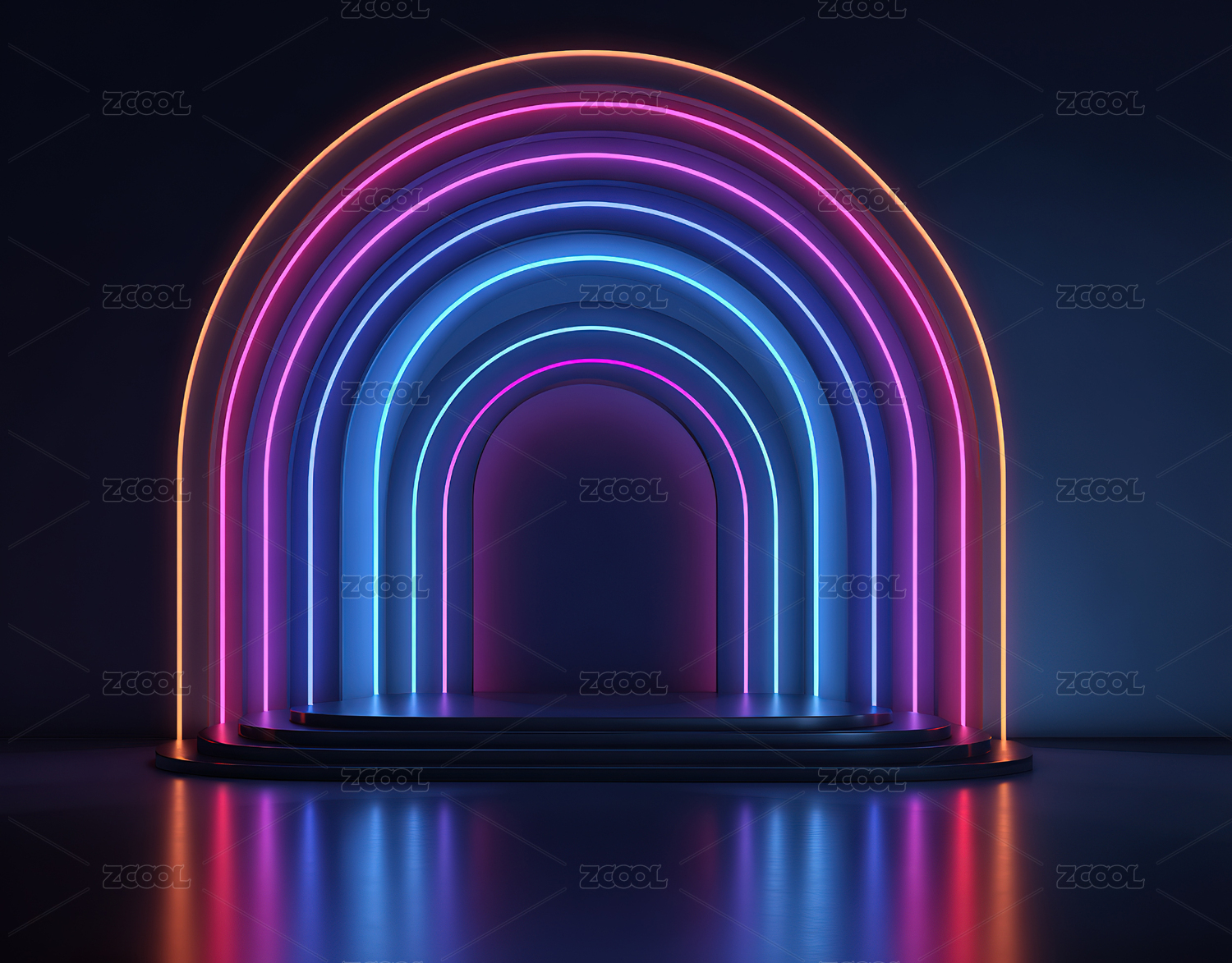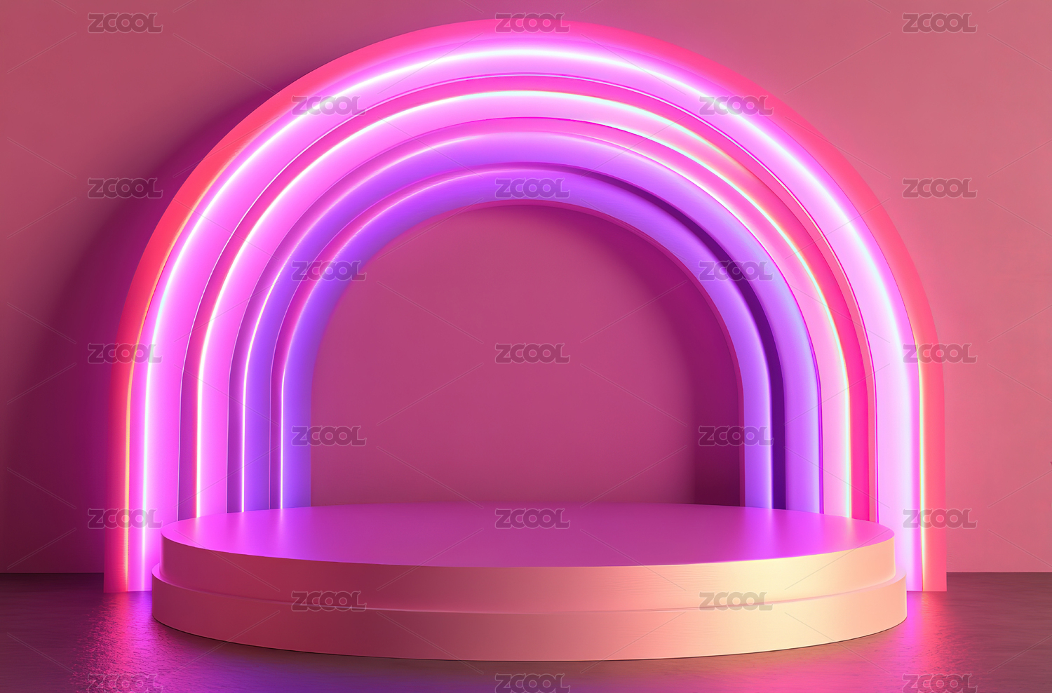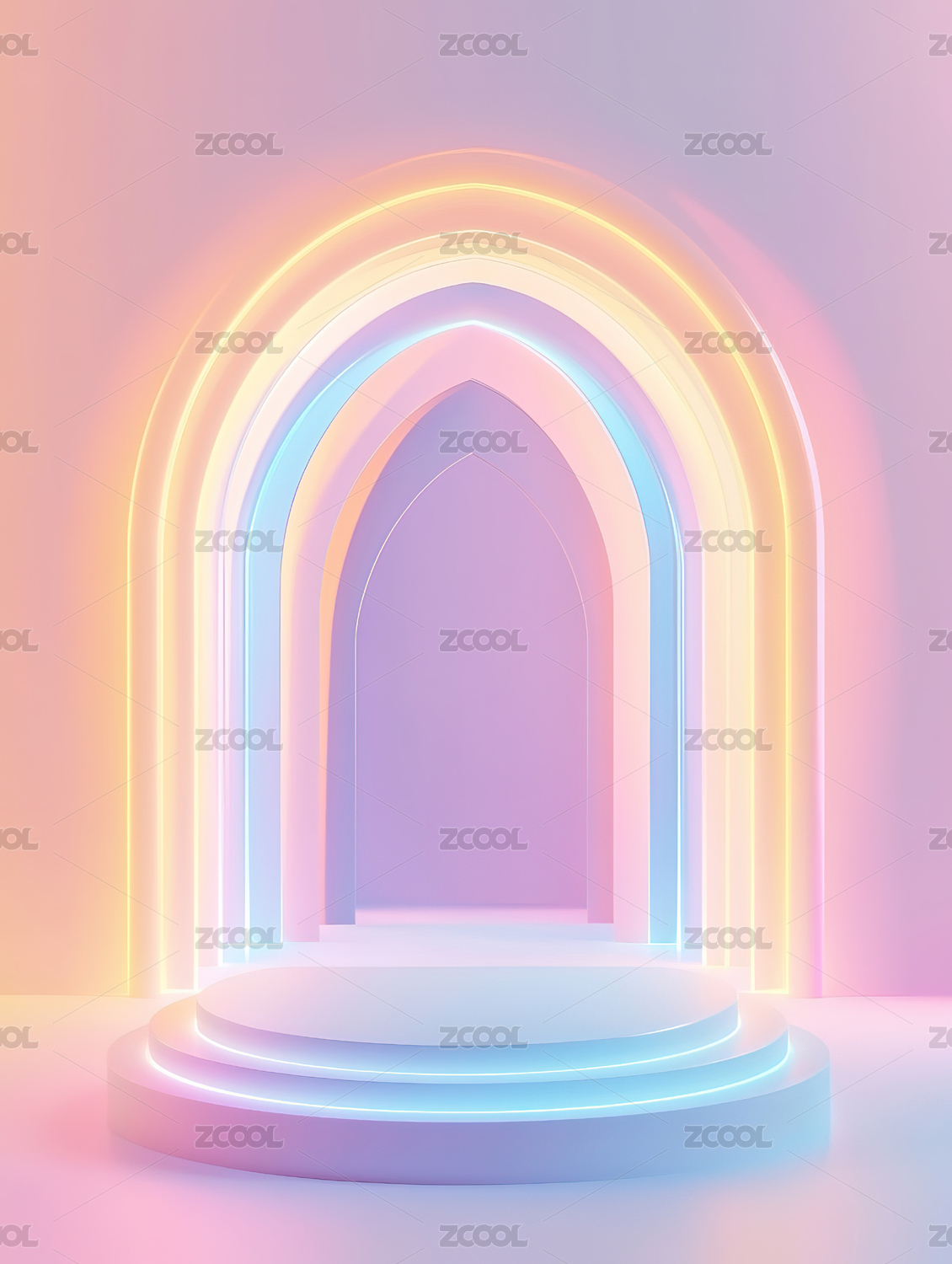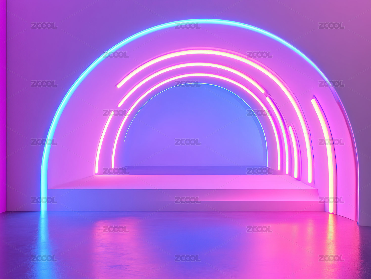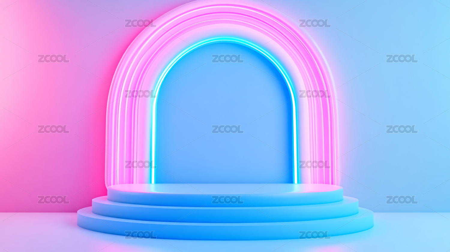 蓝粉光隧道的极简舞台空间设计