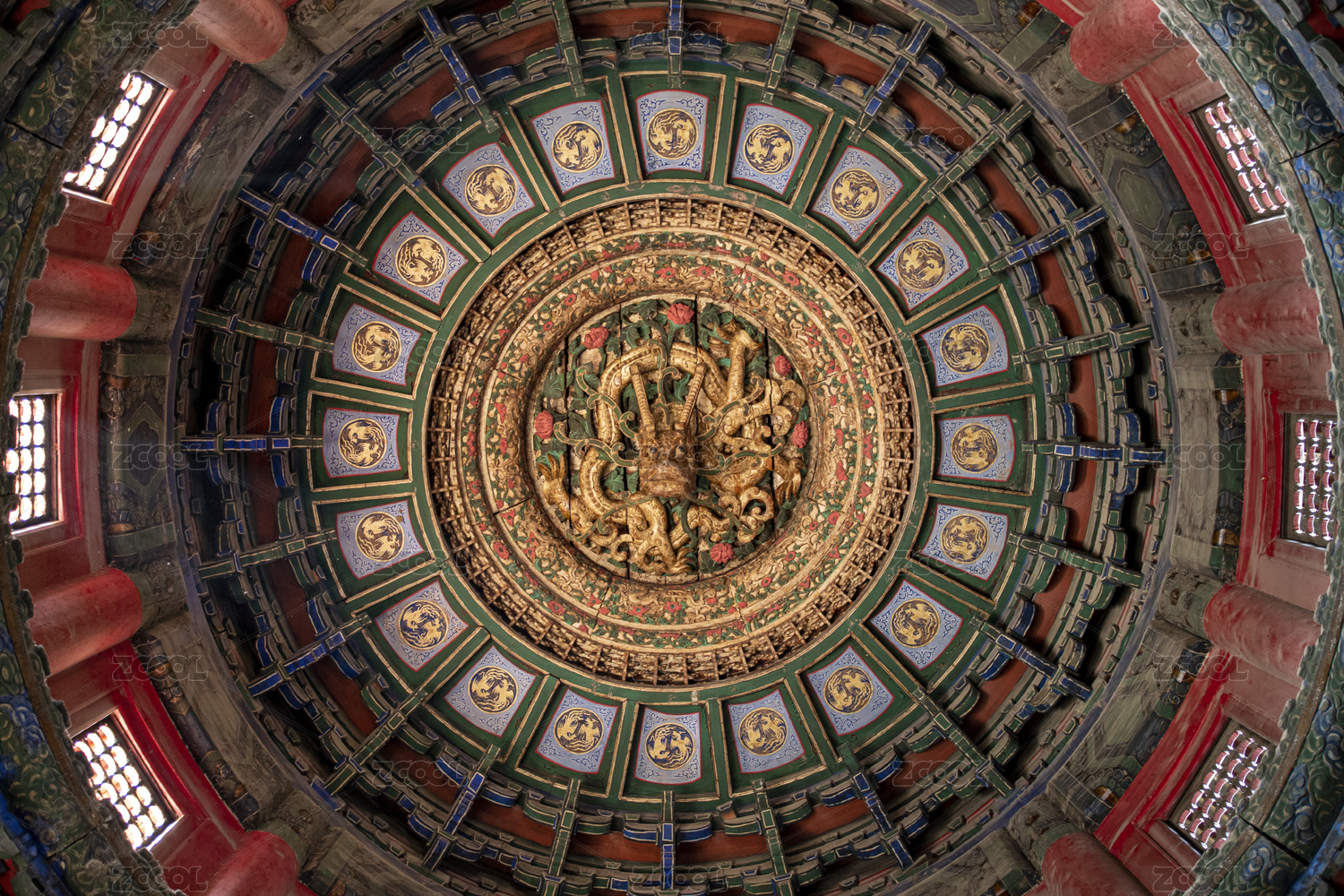 中国北京故宫古建筑九龙图腾浮雕天花板