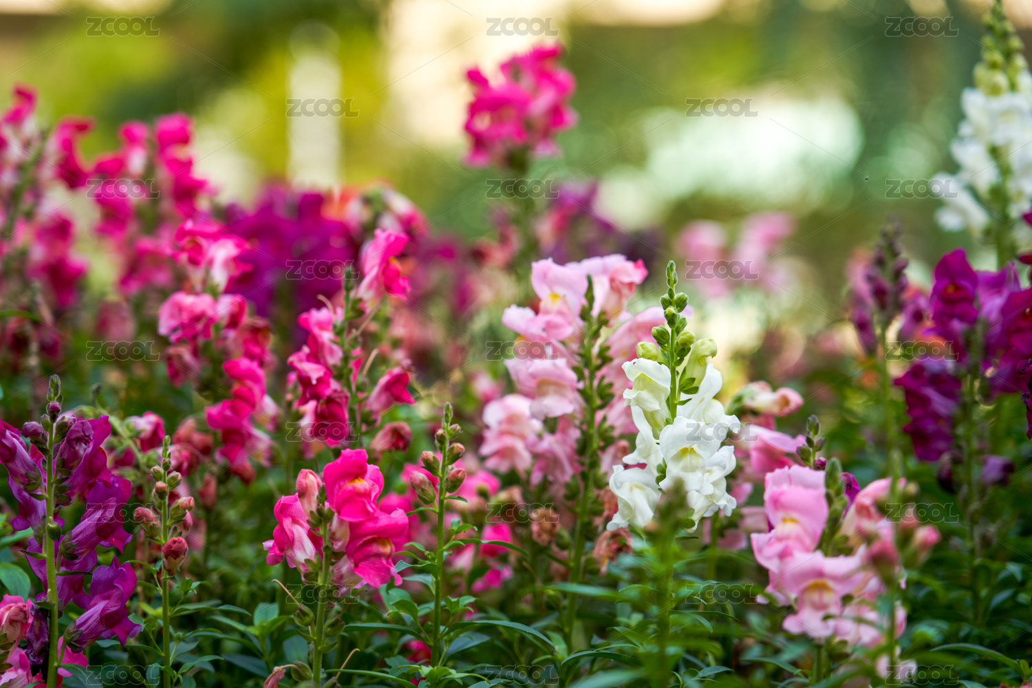 花园里美丽盛开的各种颜色金鱼草花朵花海