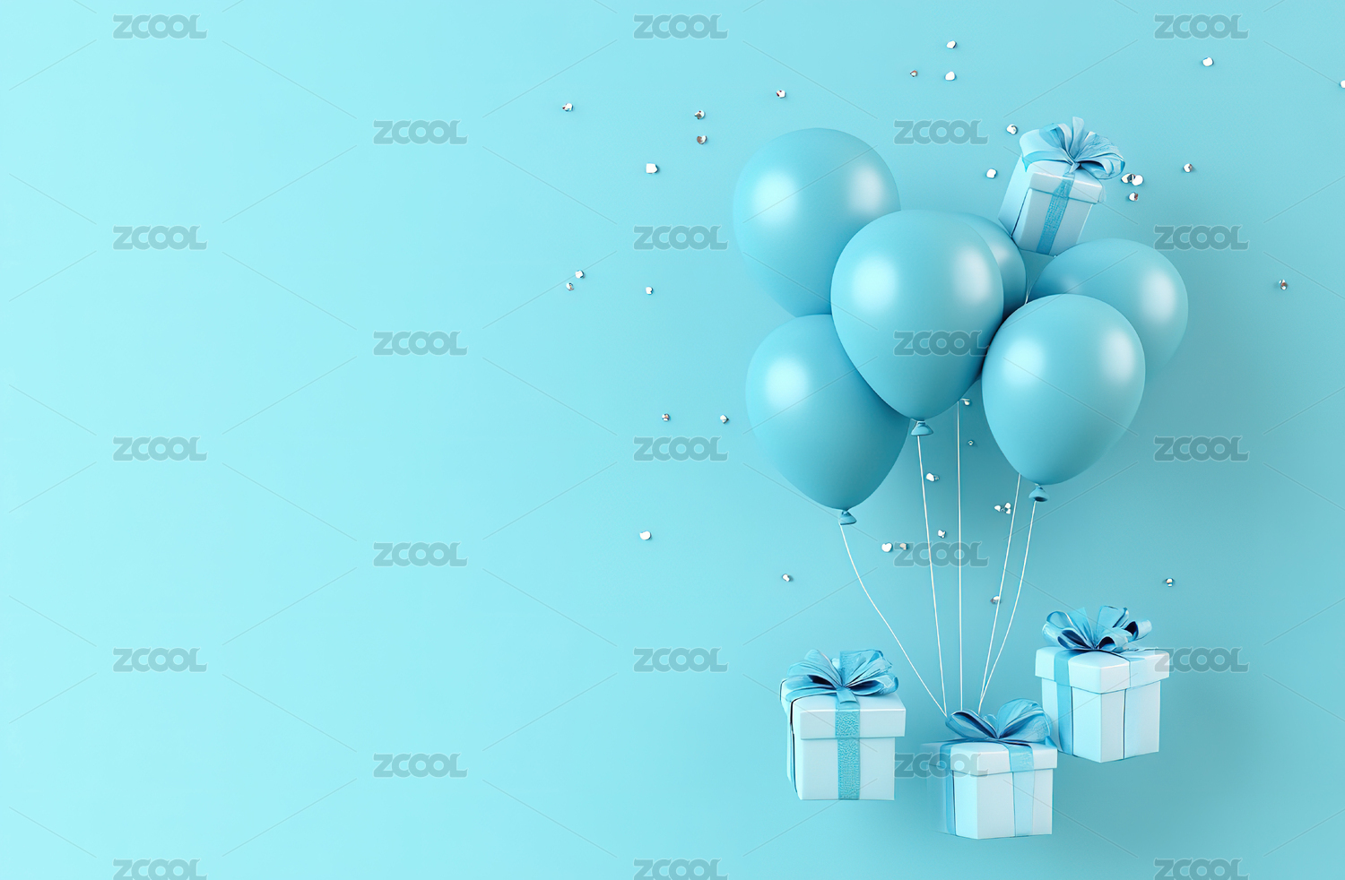 蓝色背景下的圣诞礼物和气球的特写镜头
