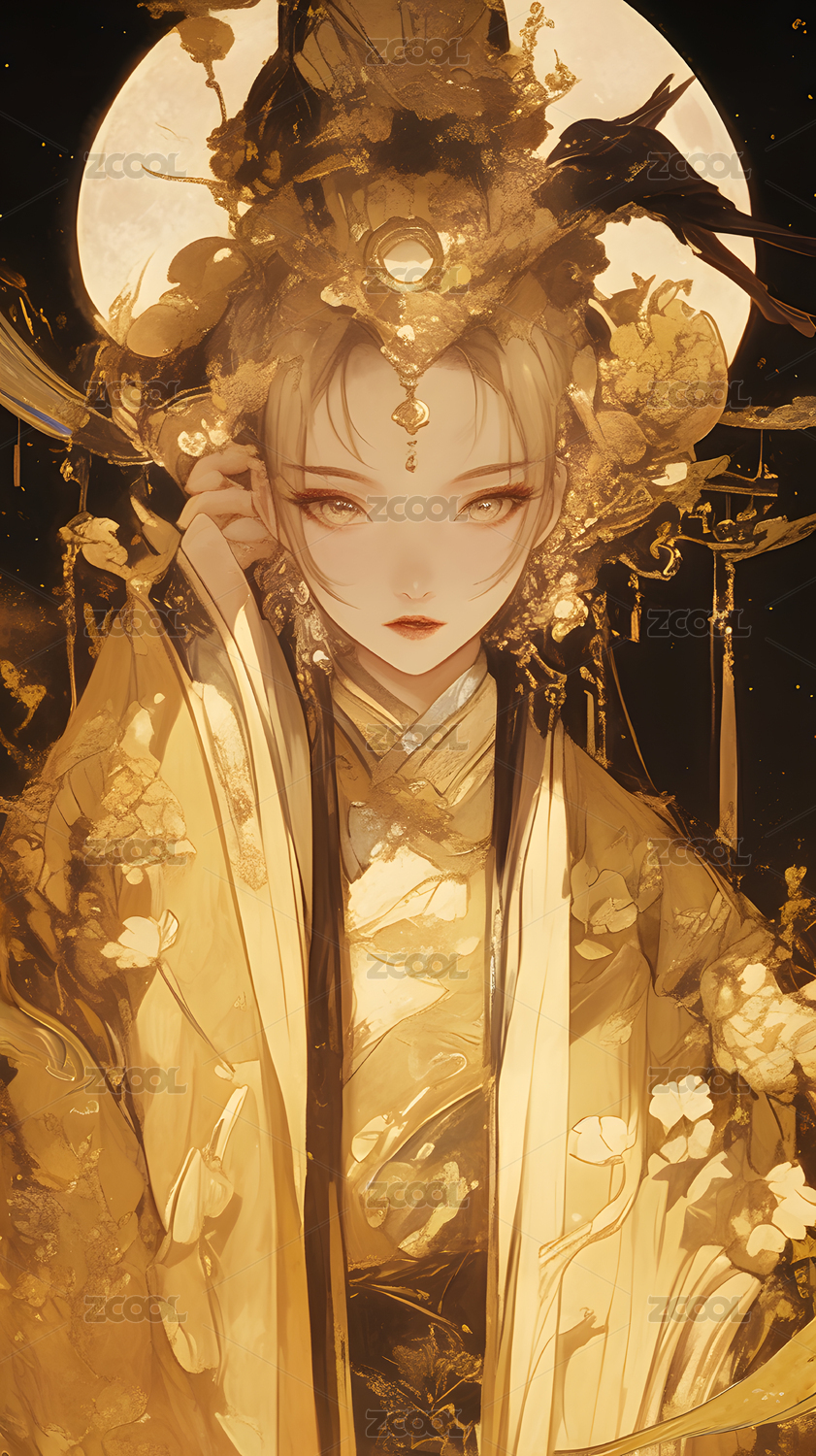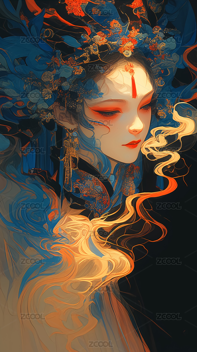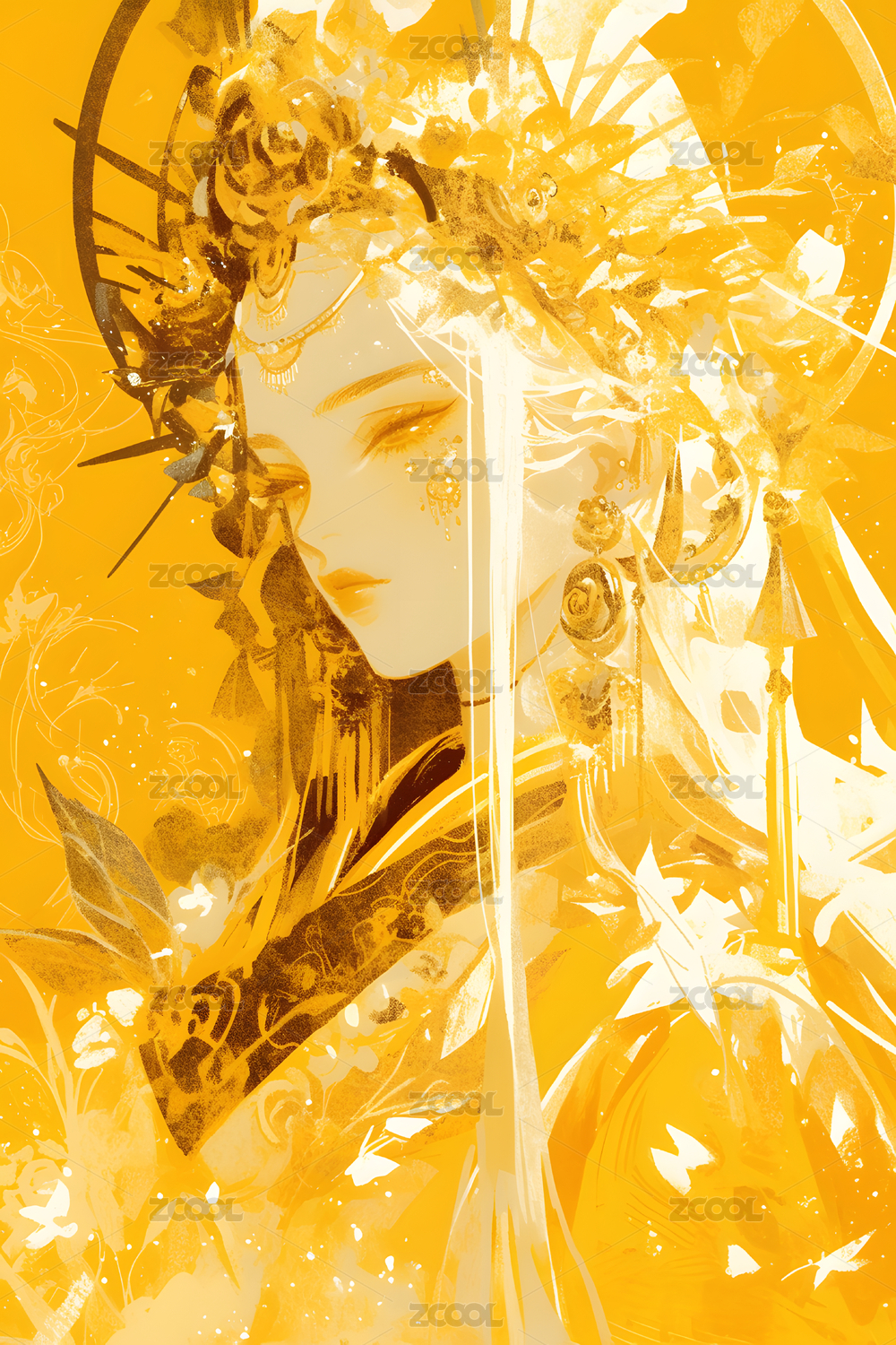 AIGCFG,国潮,中国风,国风,插画,传统,彩色,发钗,头冠,复古