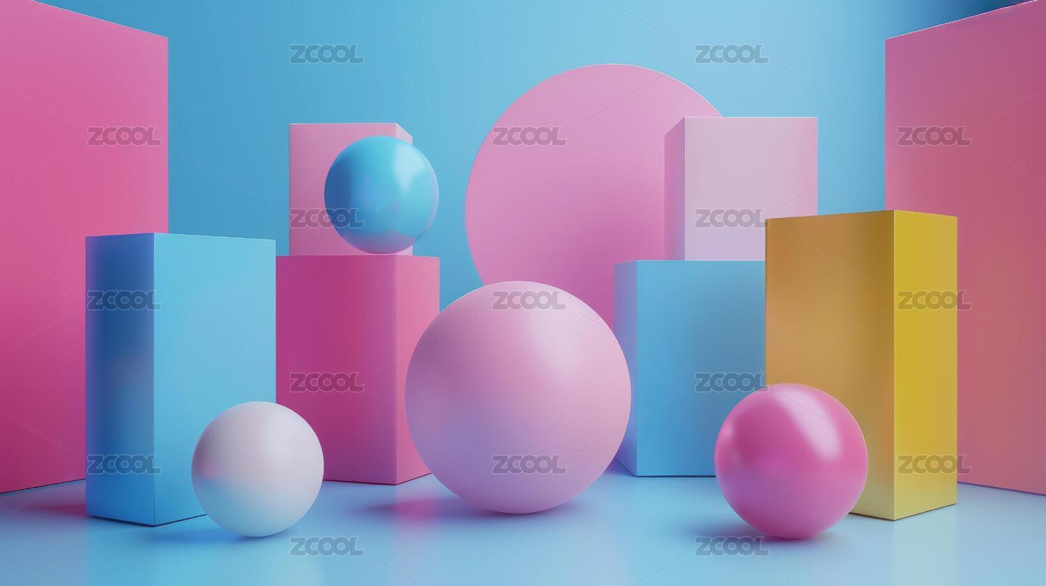 粉蓝几何形状背景