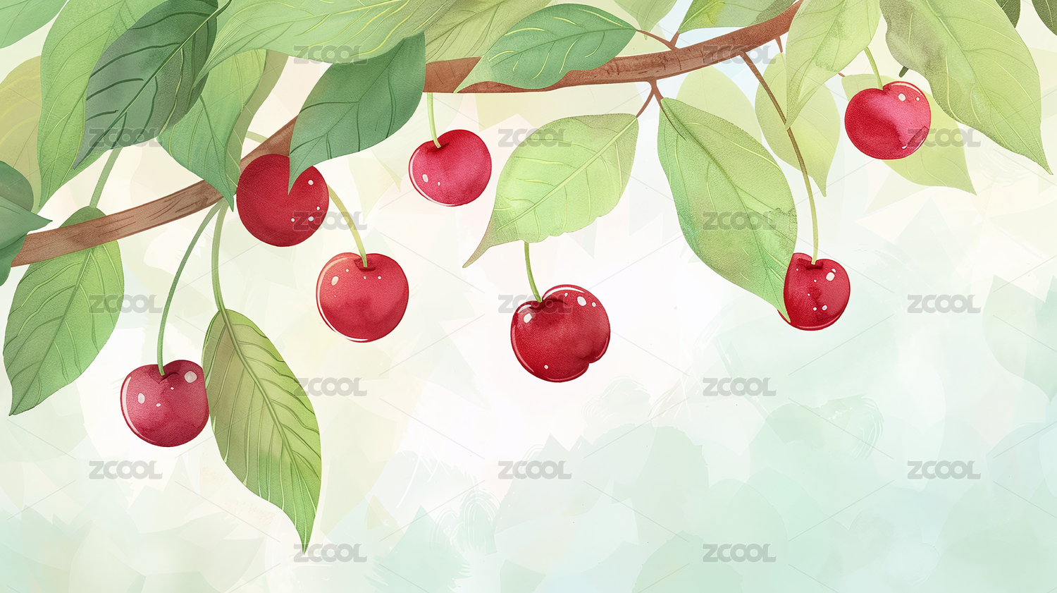 水果,车厘子,樱桃,插画,食物,红色,时尚,新鲜,有机,健康