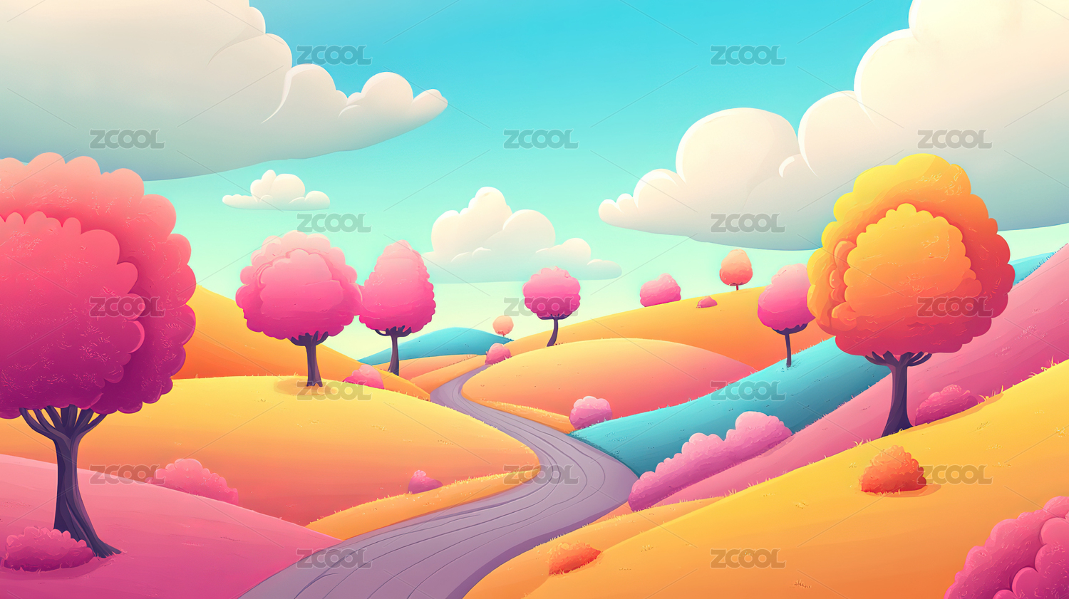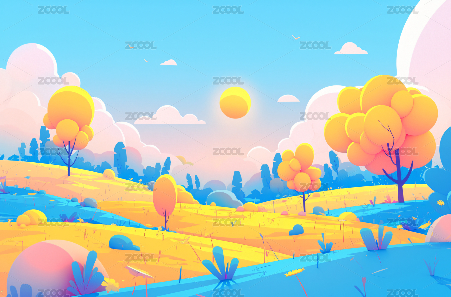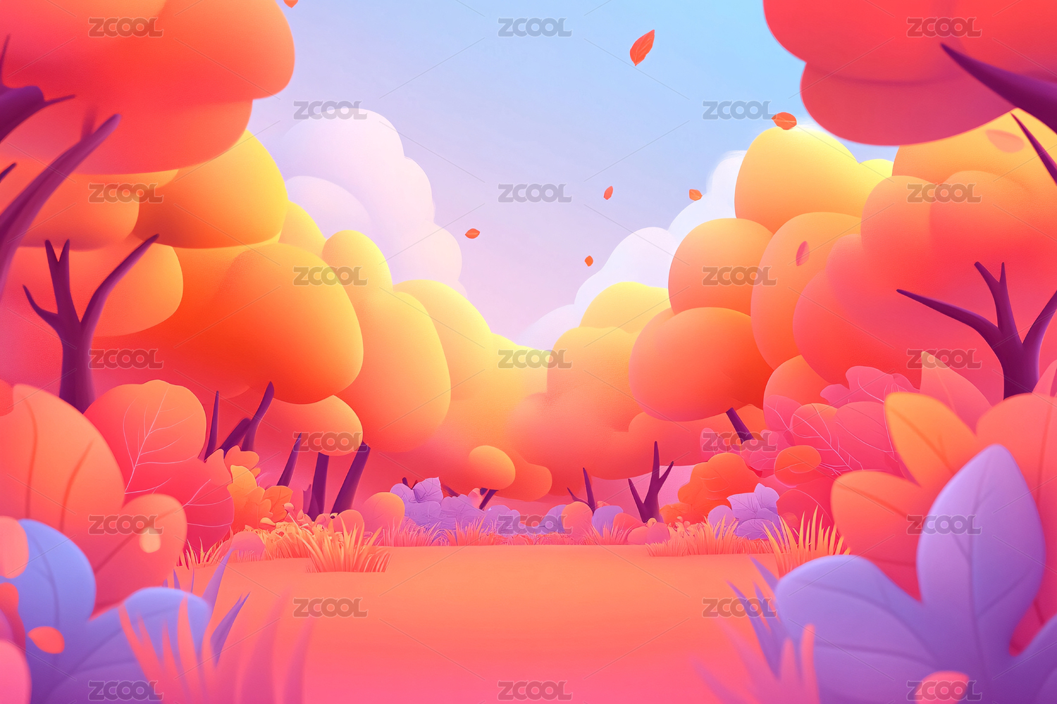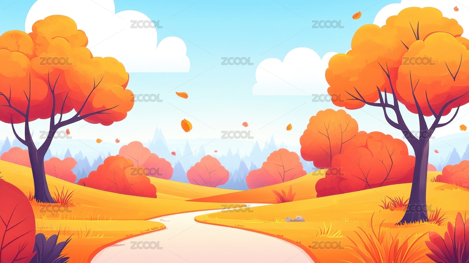 秋天秋季立秋秋分自然户外风景卡通漫画插画