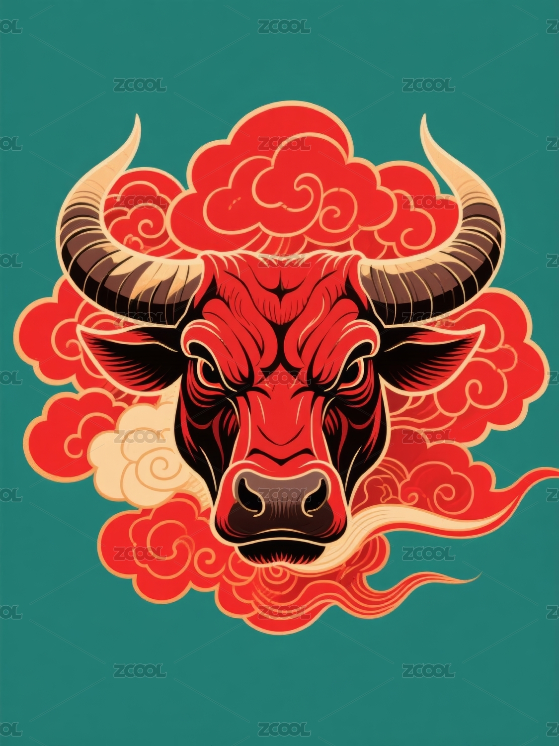 红黑配色,版画,油画,插画,牛,生肖牛,牛头,挂画,艺术