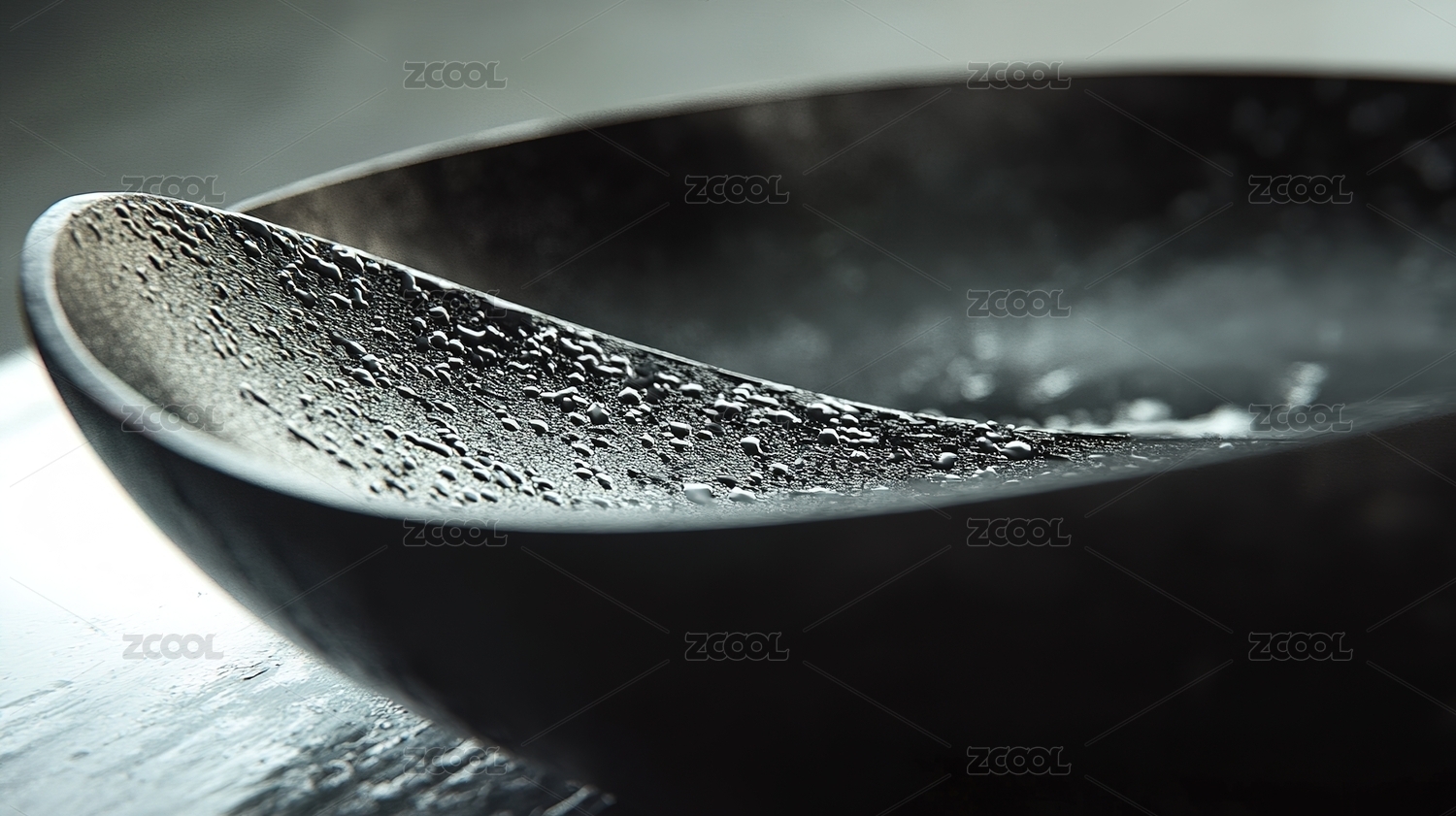 黑色不粘锅中的食用油