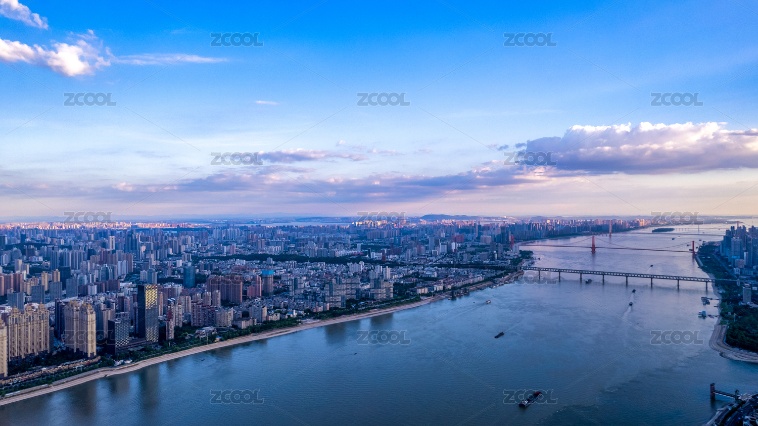 傍晚时分的湖南长沙湘江银盆岭大桥