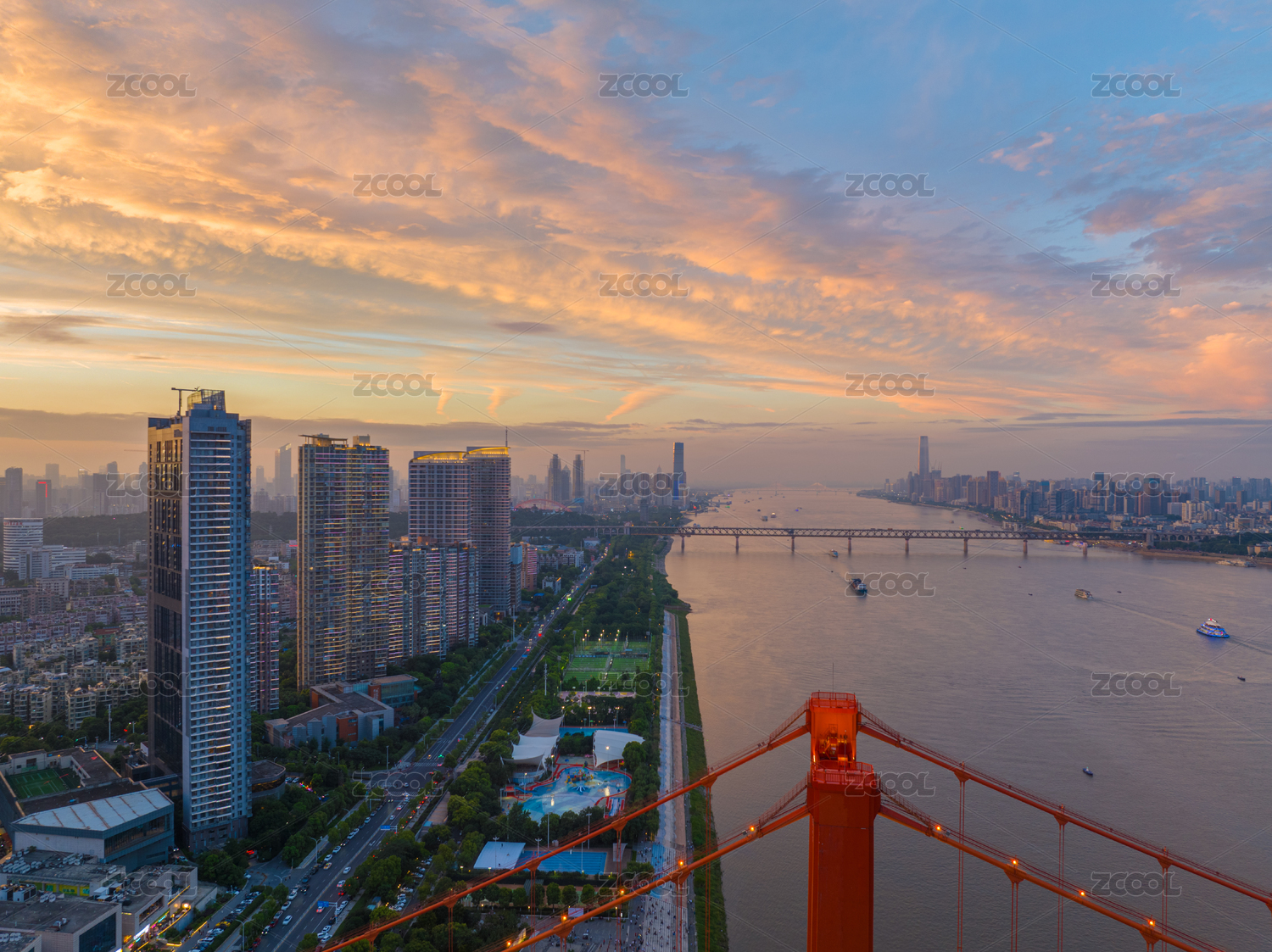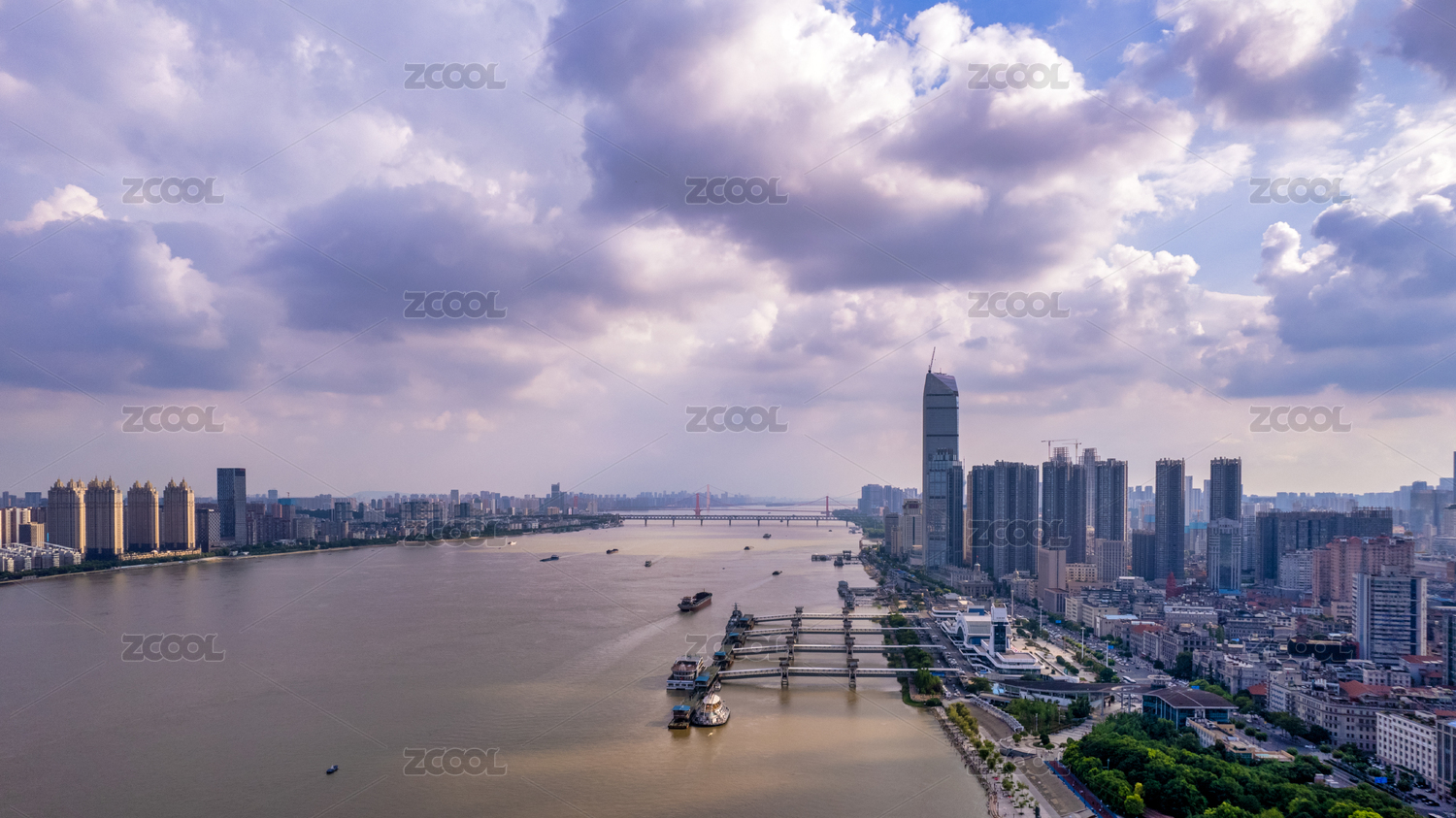 湖北武汉长江航运与长江两岸高楼