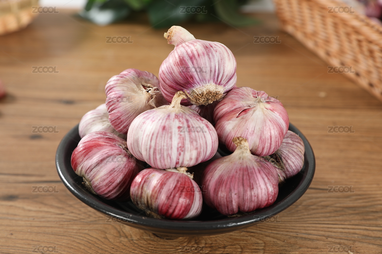 黑底上放着一筐大蒜