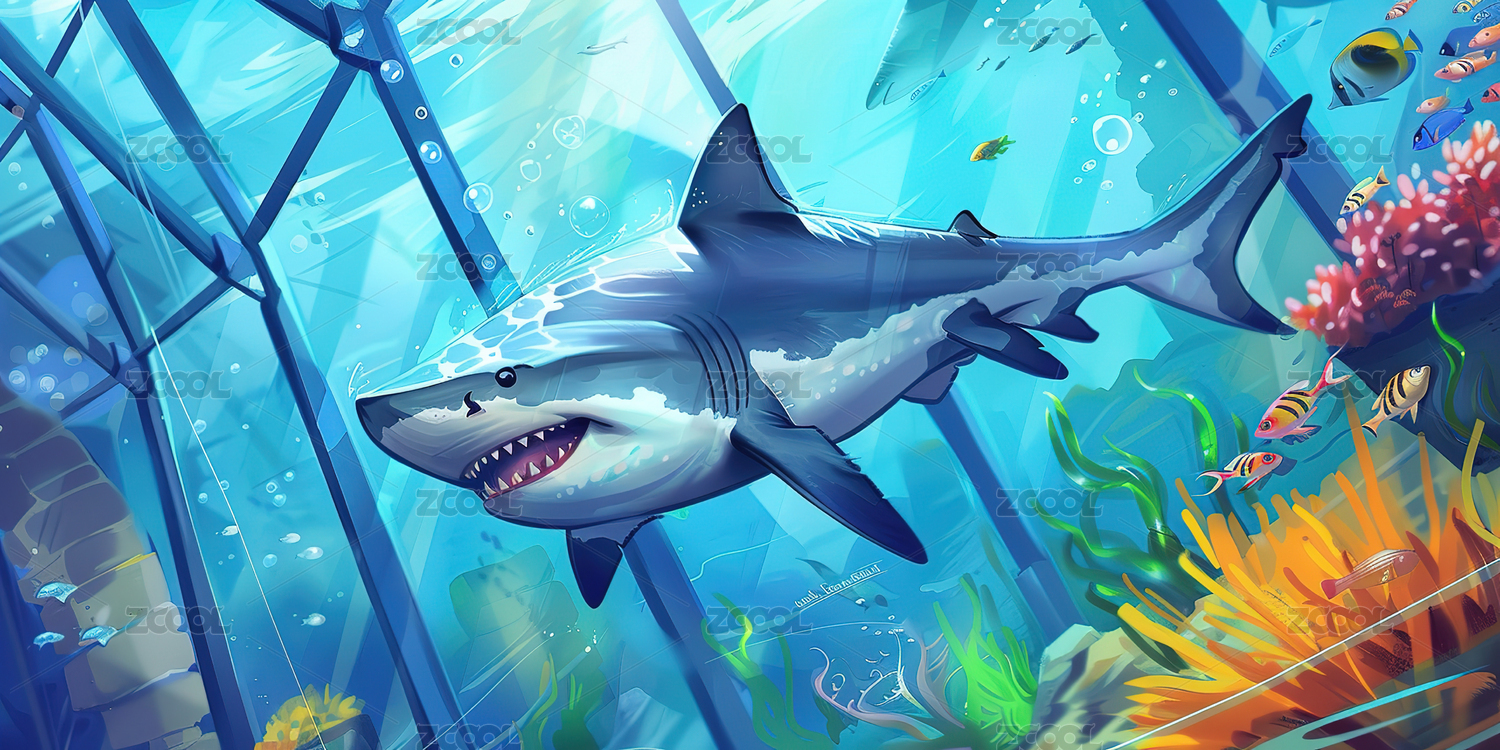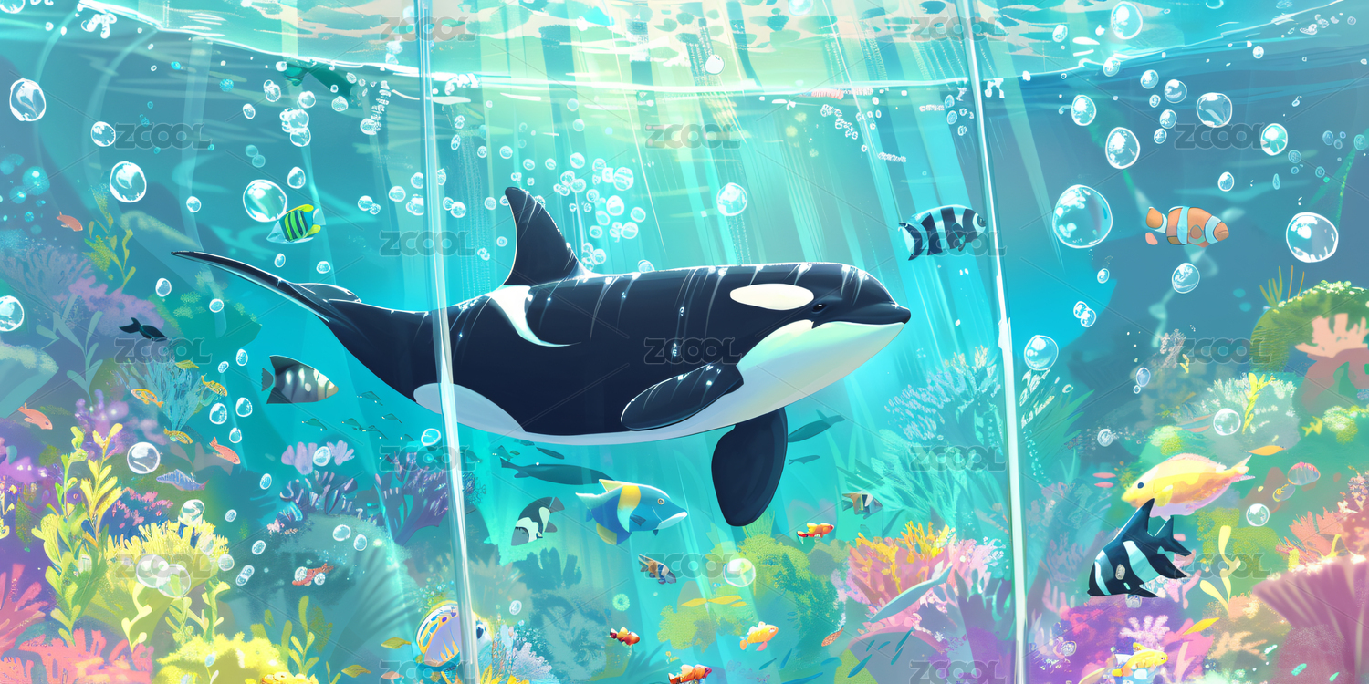 插画,图像,动物主题,动物,AIGC202401,宁静,野外动物,唯美,水彩画,海洋