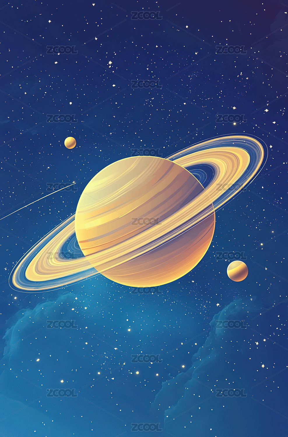 科幻风格宇宙中的土星竖屏背景