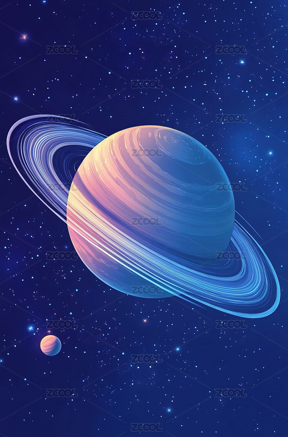 蓝色行星与环带的宇宙景象