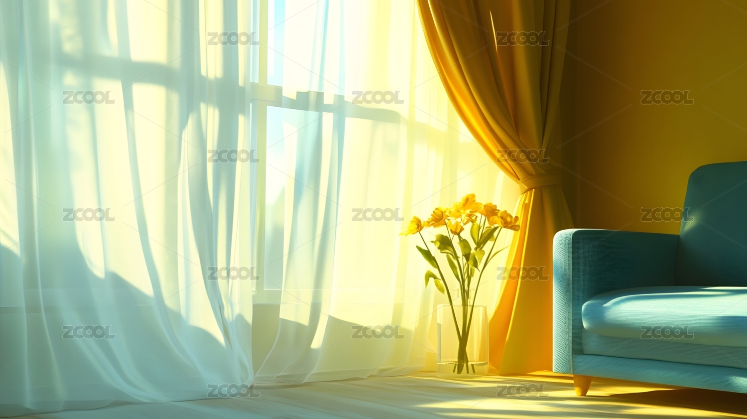 温馨,简约,静谧,现代,自然,米色,窗帘,沙发,家居,室内
