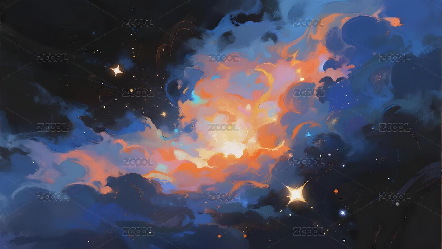 云朵,云彩,紫色,插画,天空,星星,背景,晚霞,云,天