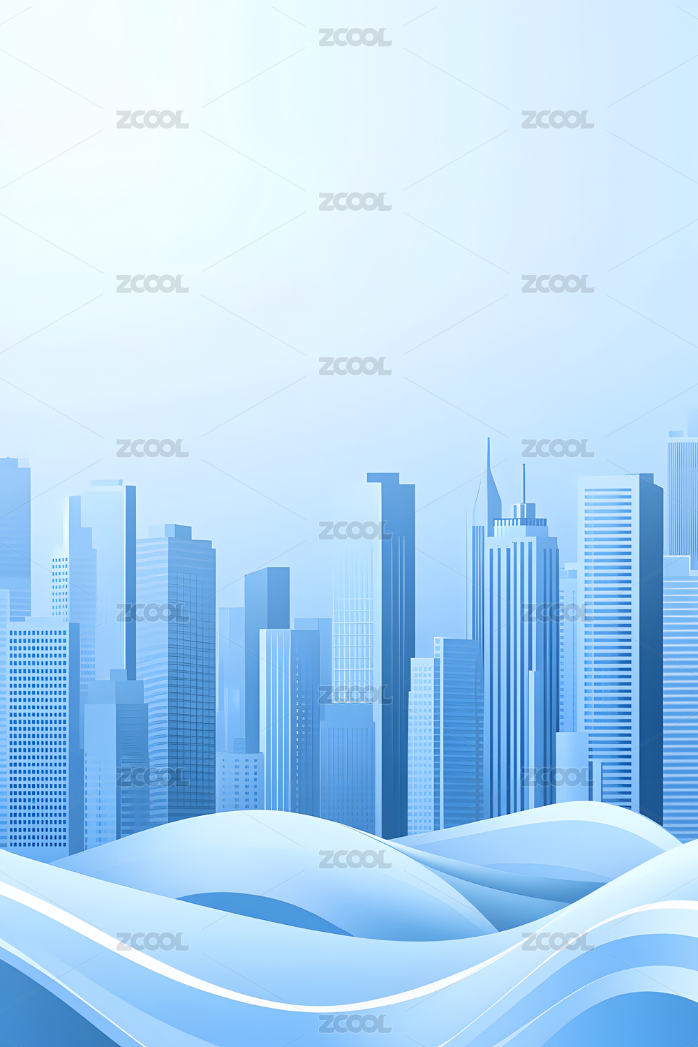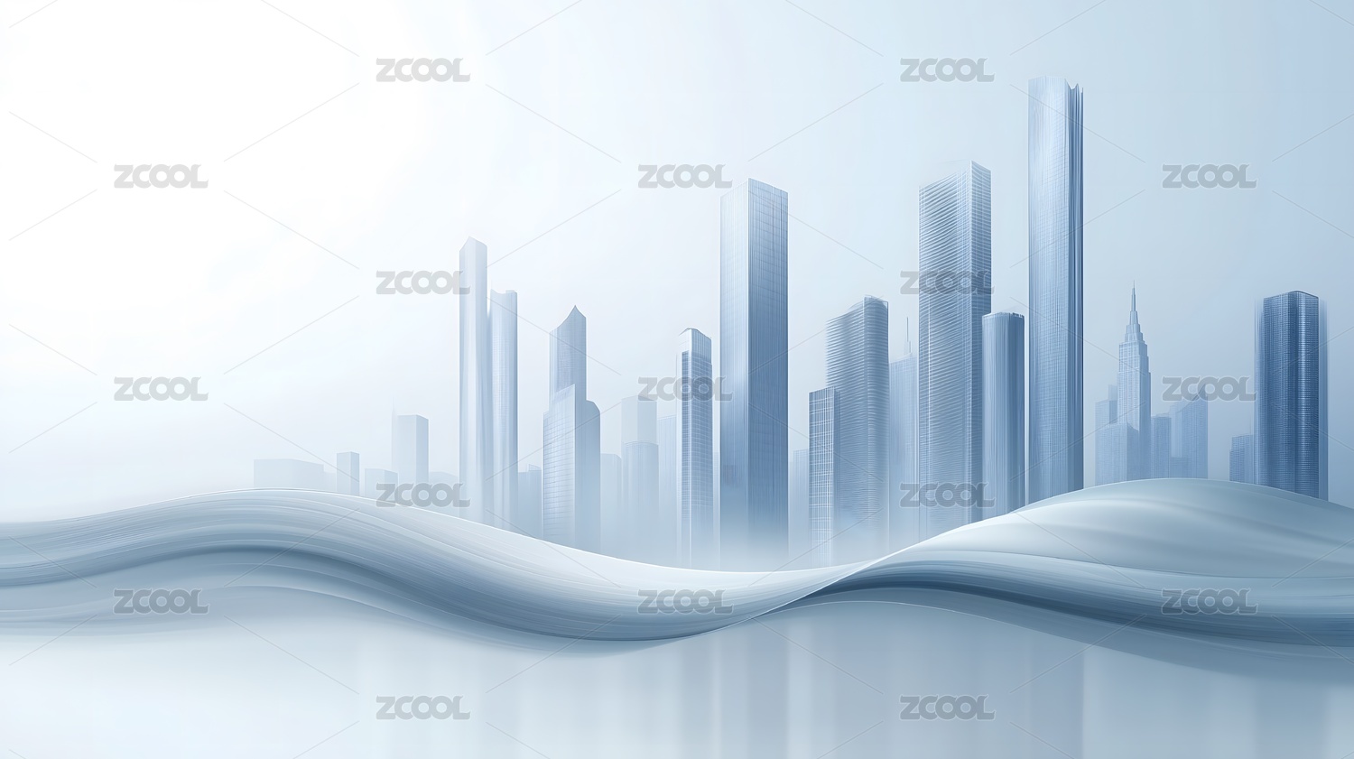 未来城市天际线与波浪图案背景