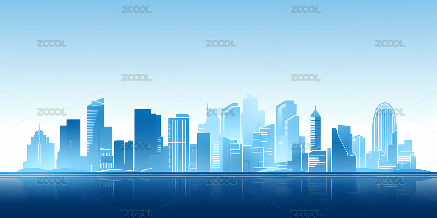 蓝色渐变背景城市建筑剪影素材图