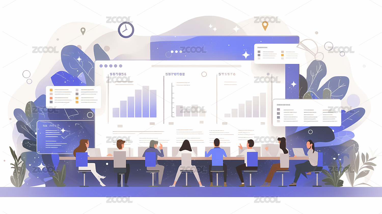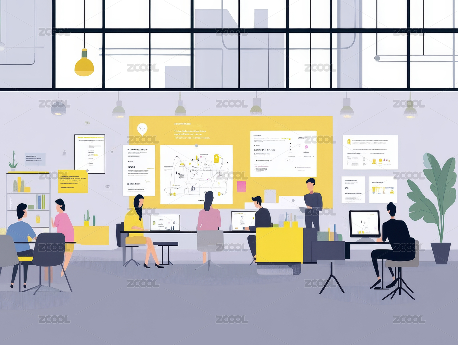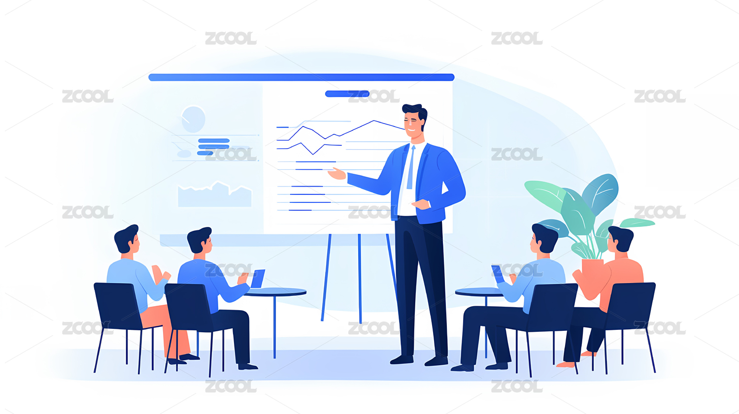 扁平风,商务,人物,工作,现场,看板,蓝色,插画