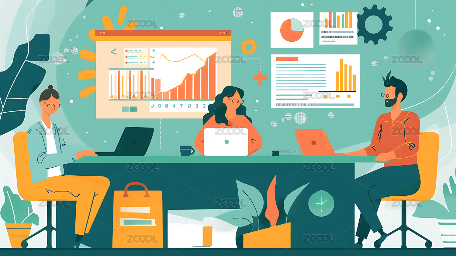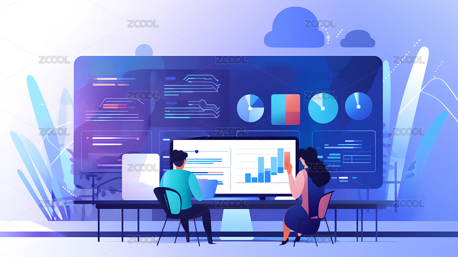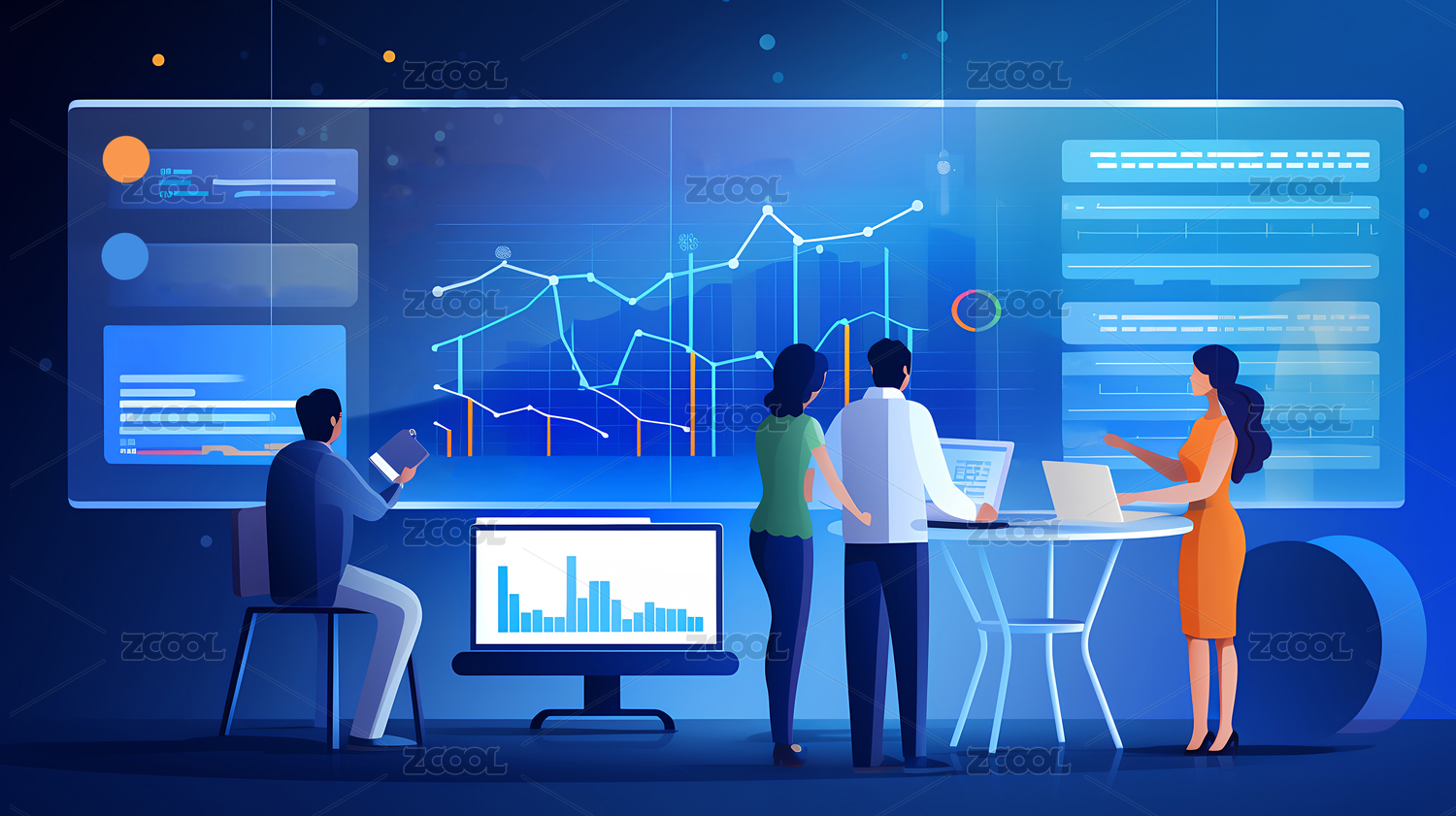 扁平风,商务,人物,工作,现场,看板,蓝色,插画