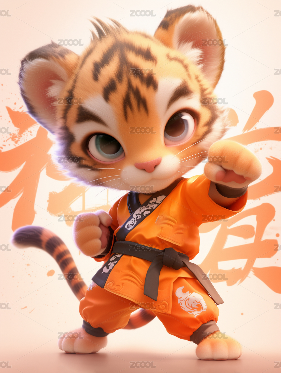 十二生肖3D卡通插画 虎 寅虎