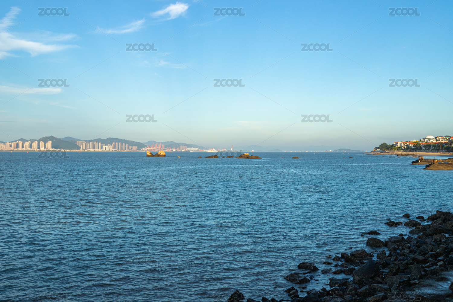 中国深圳南澳海贝湾夏日午后的蓝天白云海景