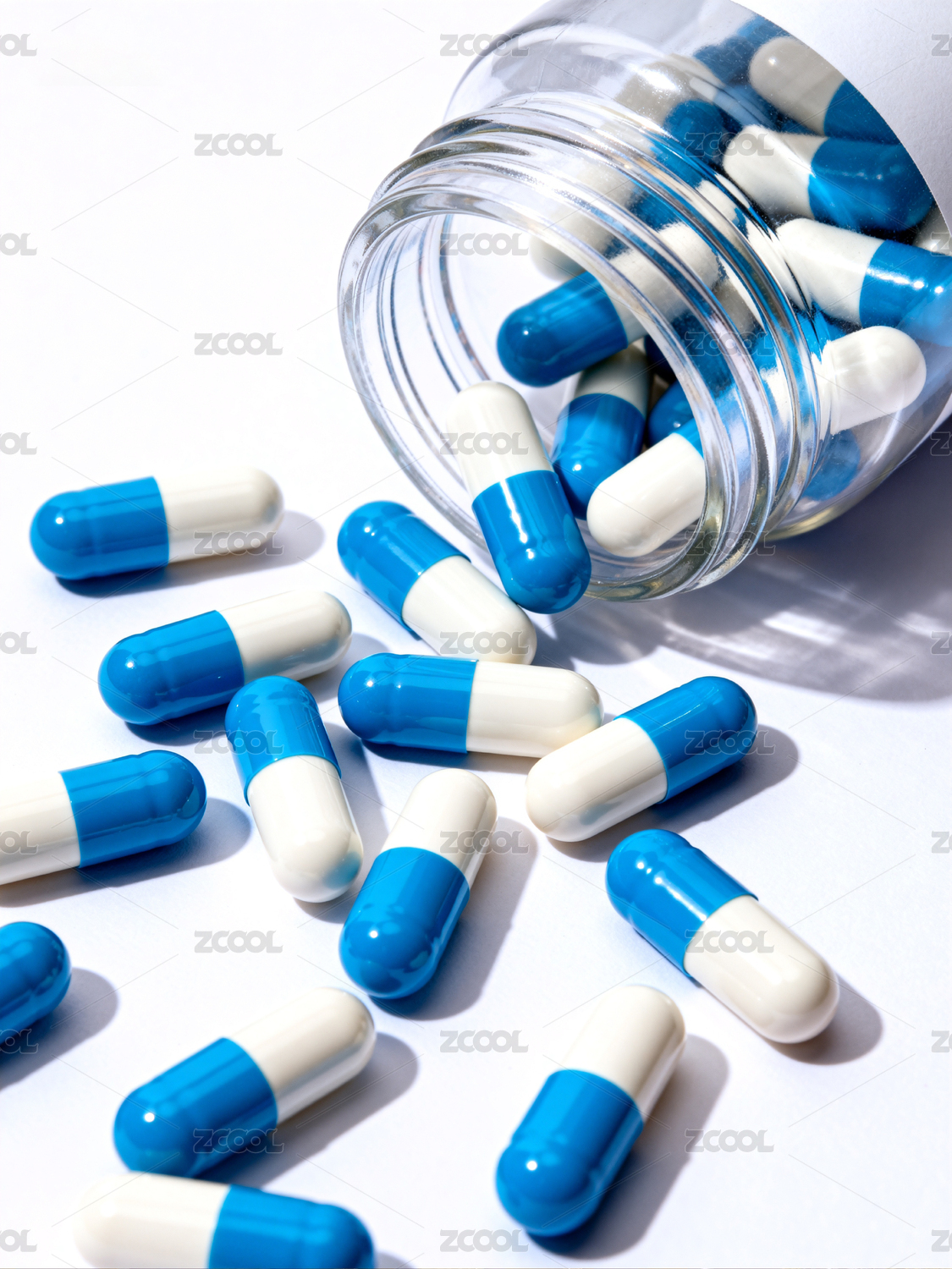 卡通淡蓝色立体医学药品药瓶胶囊模型插画