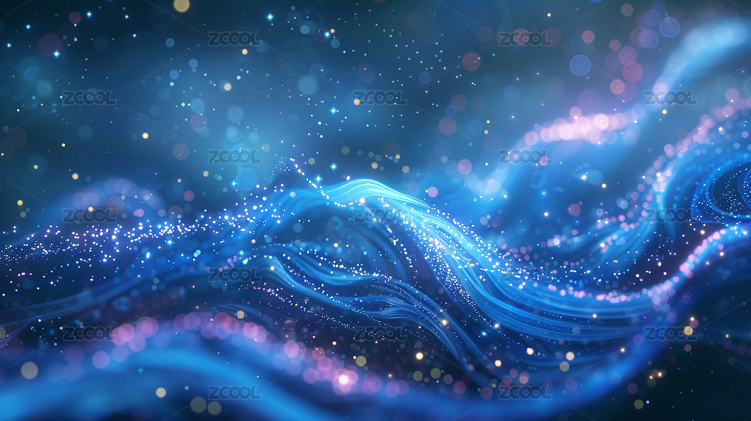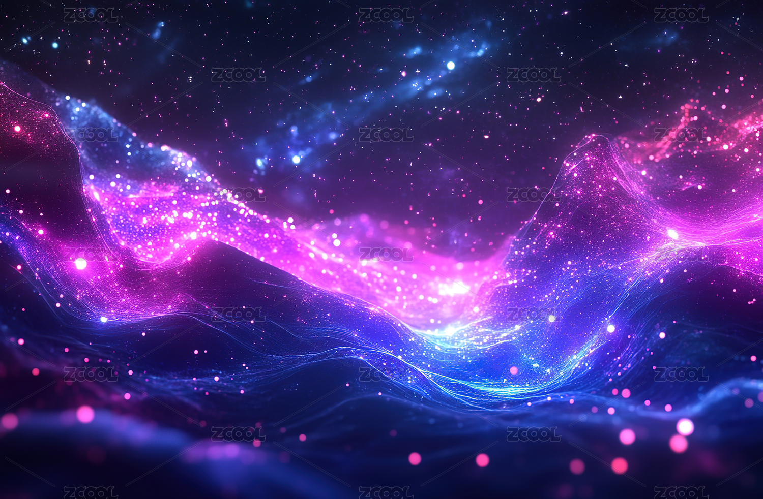 宇宙银河星空蓝紫色质感光斑粒子在流动