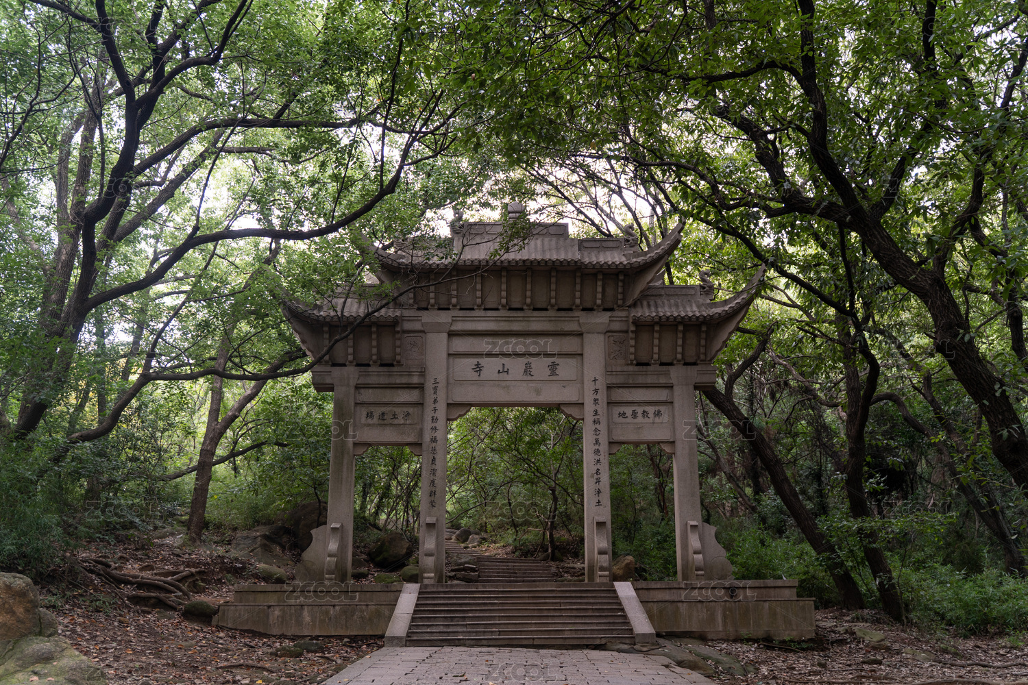 佛山礌岗公园登山台阶与中式牌坊牌楼建筑
