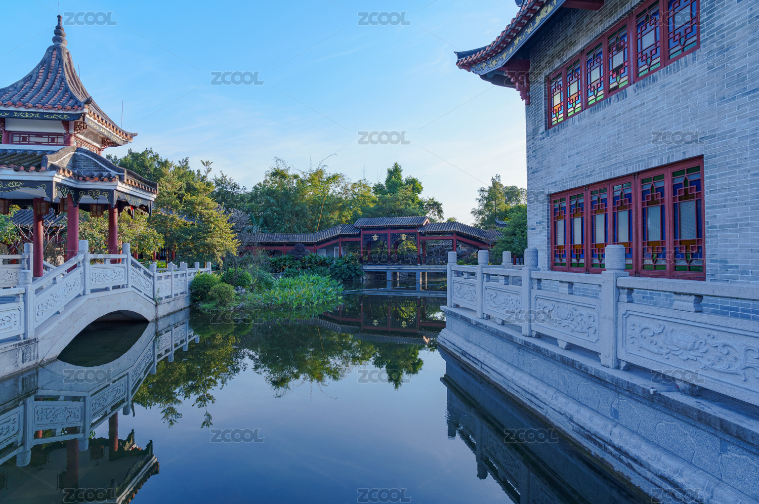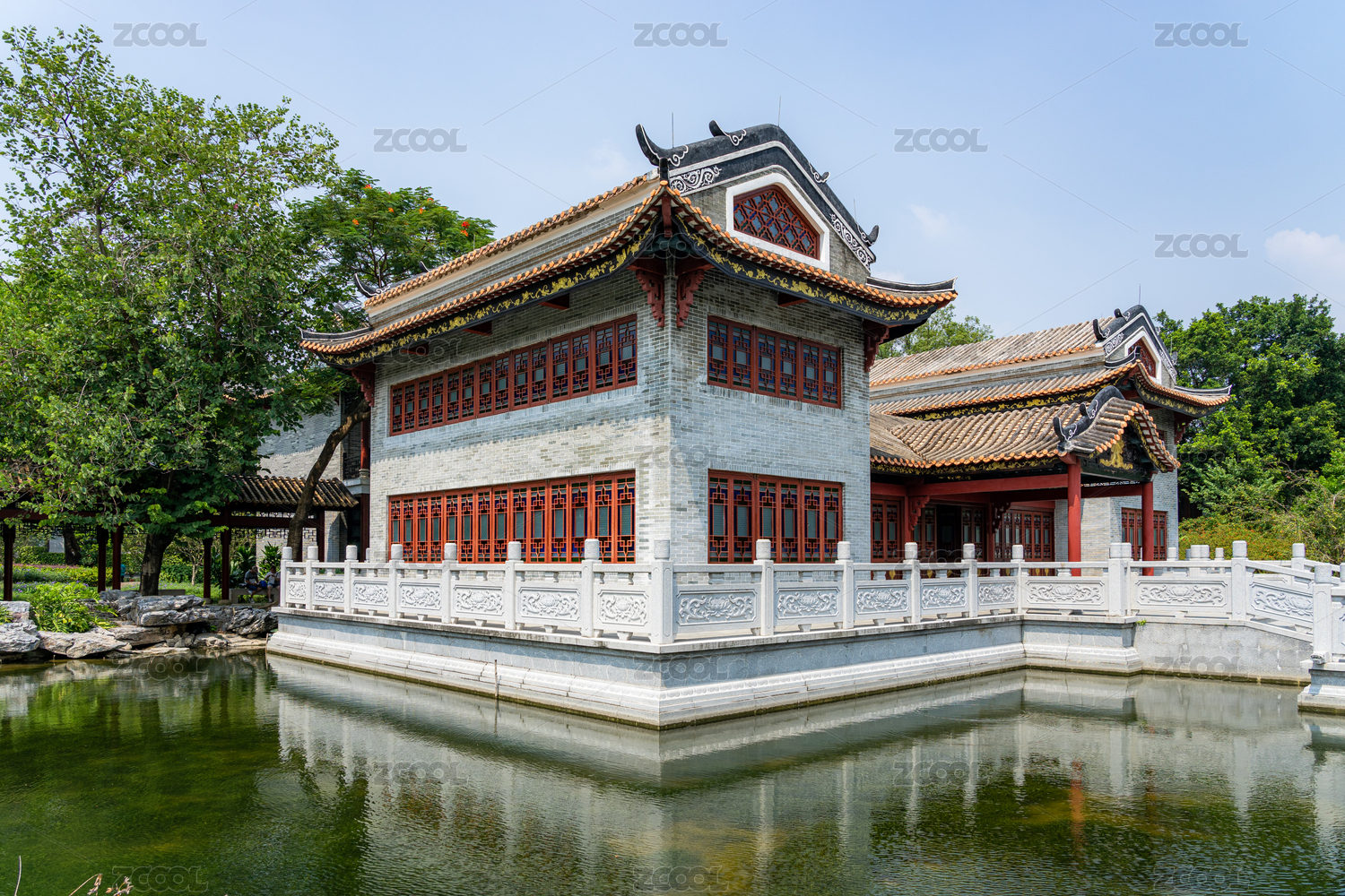 佛山顺峰山公园粤剧大观园传统岭南园林湖景