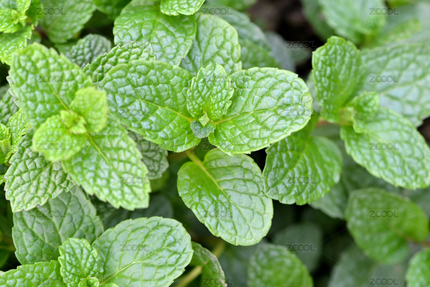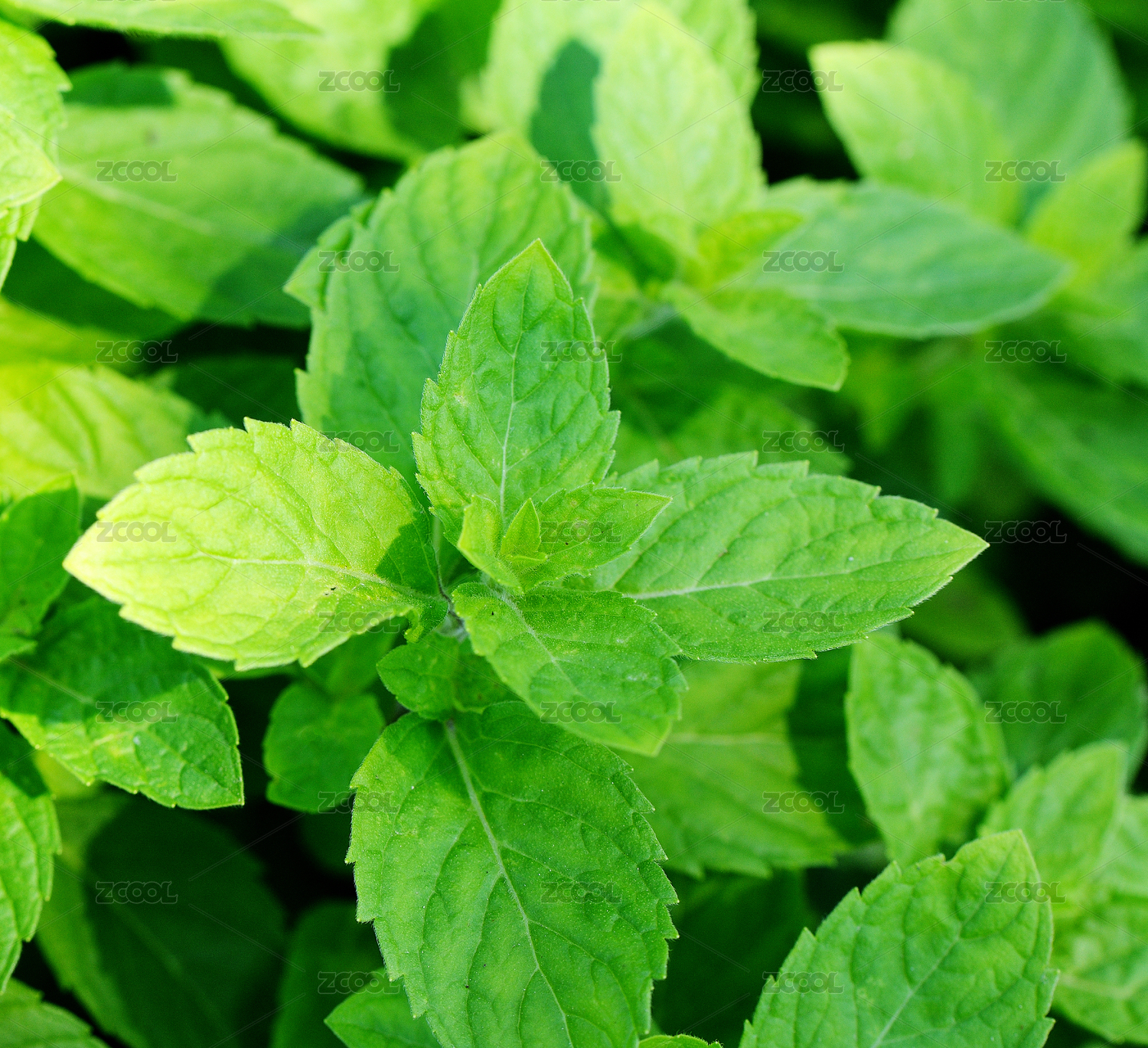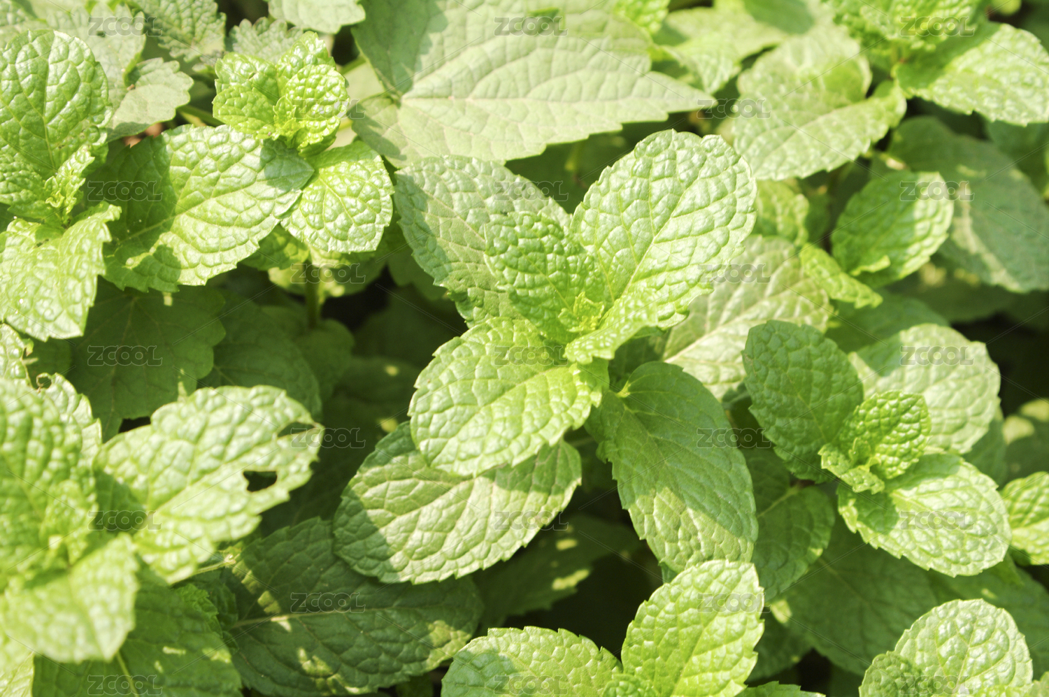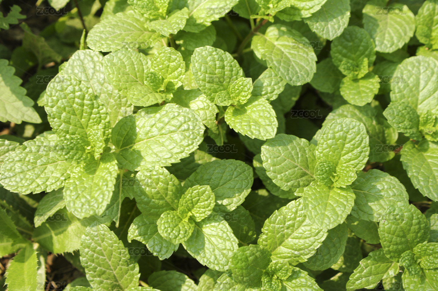 秋日午后的阳光照射在绿绿的薄荷叶上