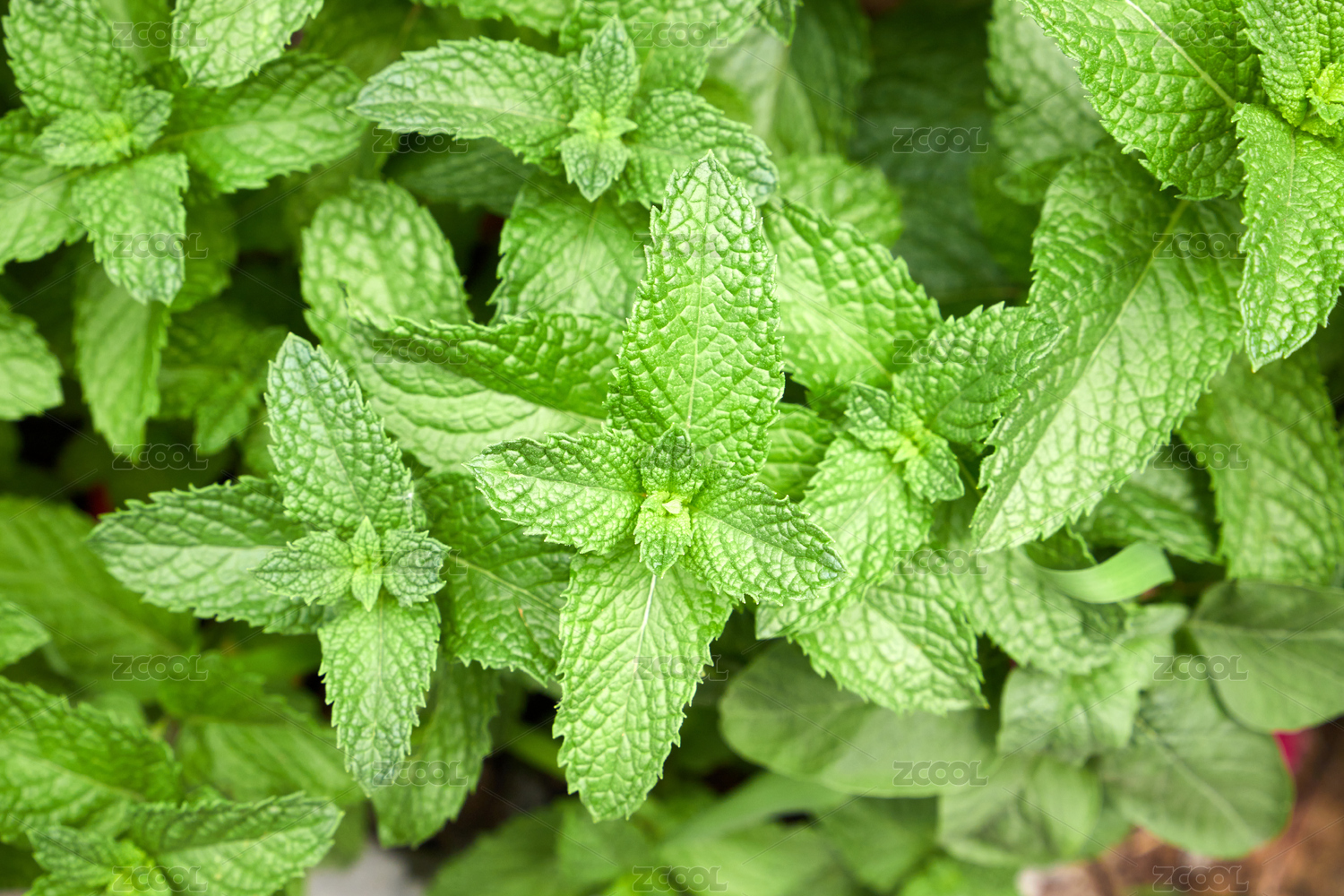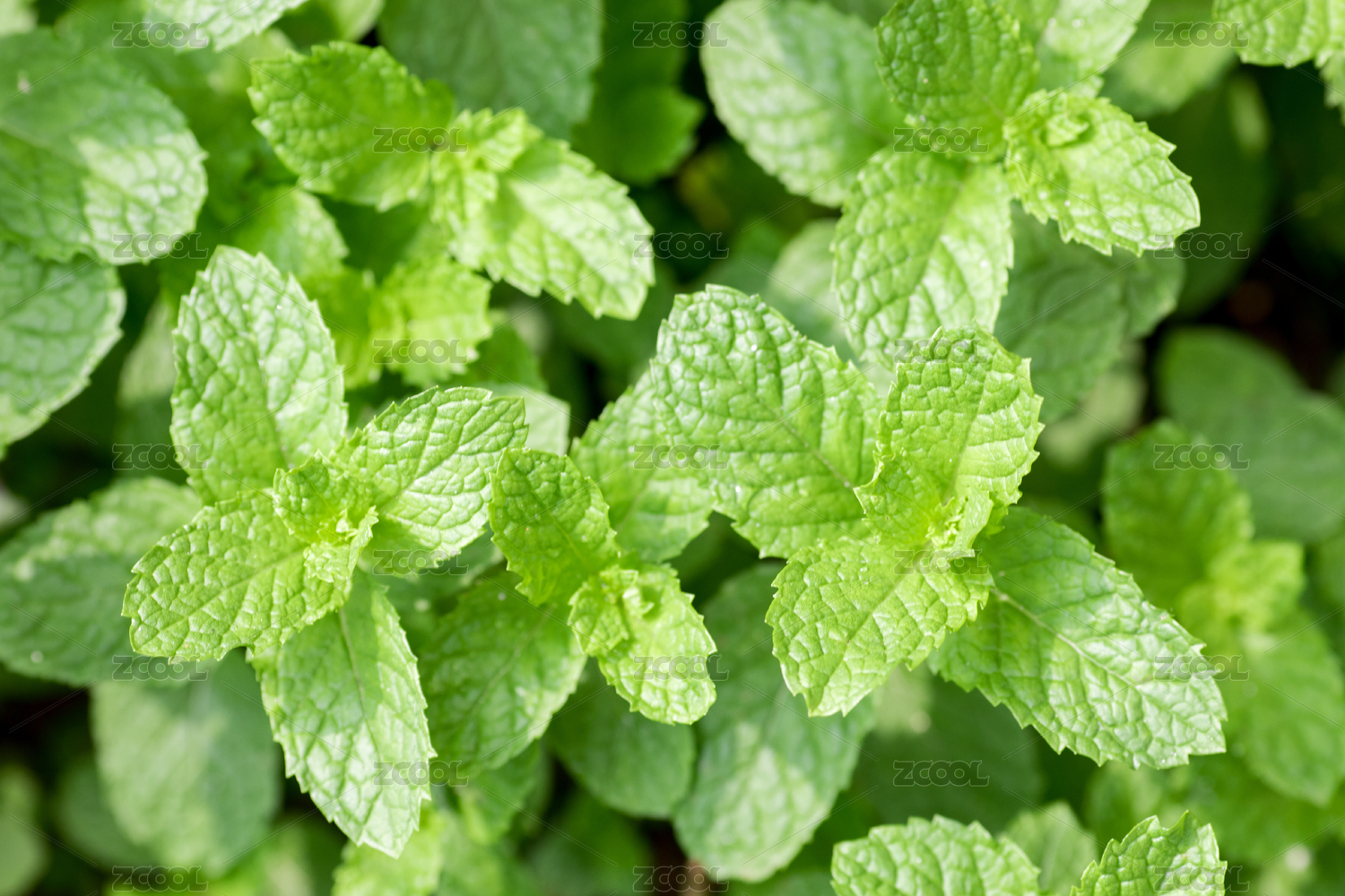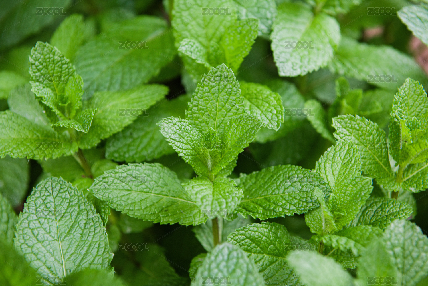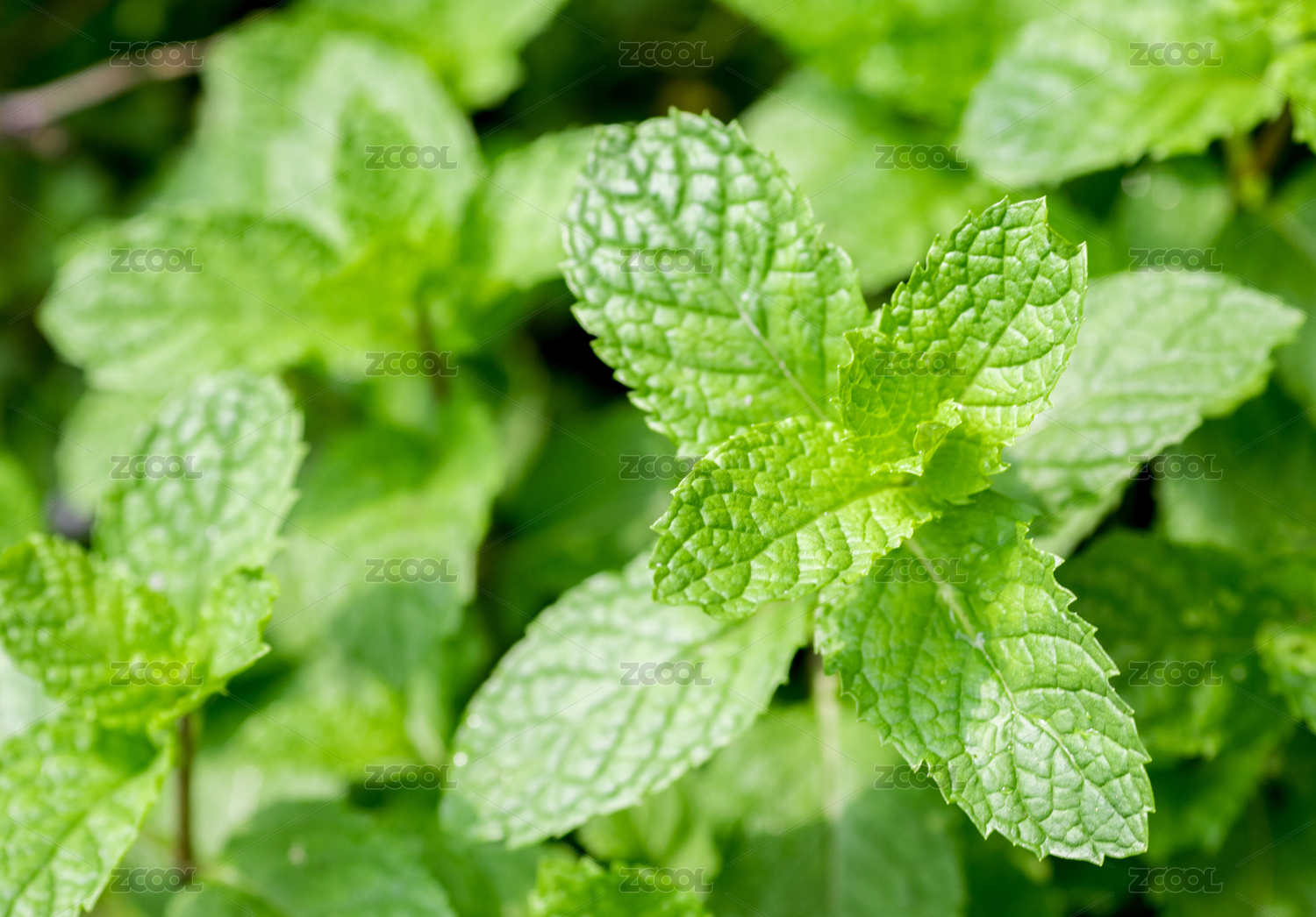 秋日午后的阳光照射在绿绿的薄荷叶上