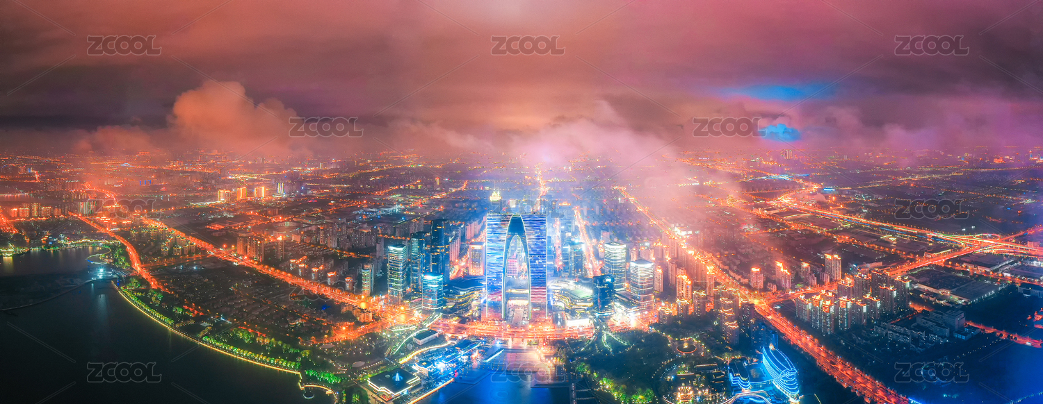 上海美丽的夜晚高角度城市天际线和霓虹灯建筑景观