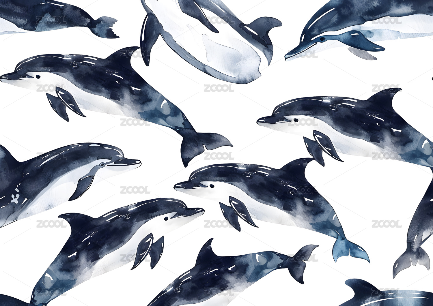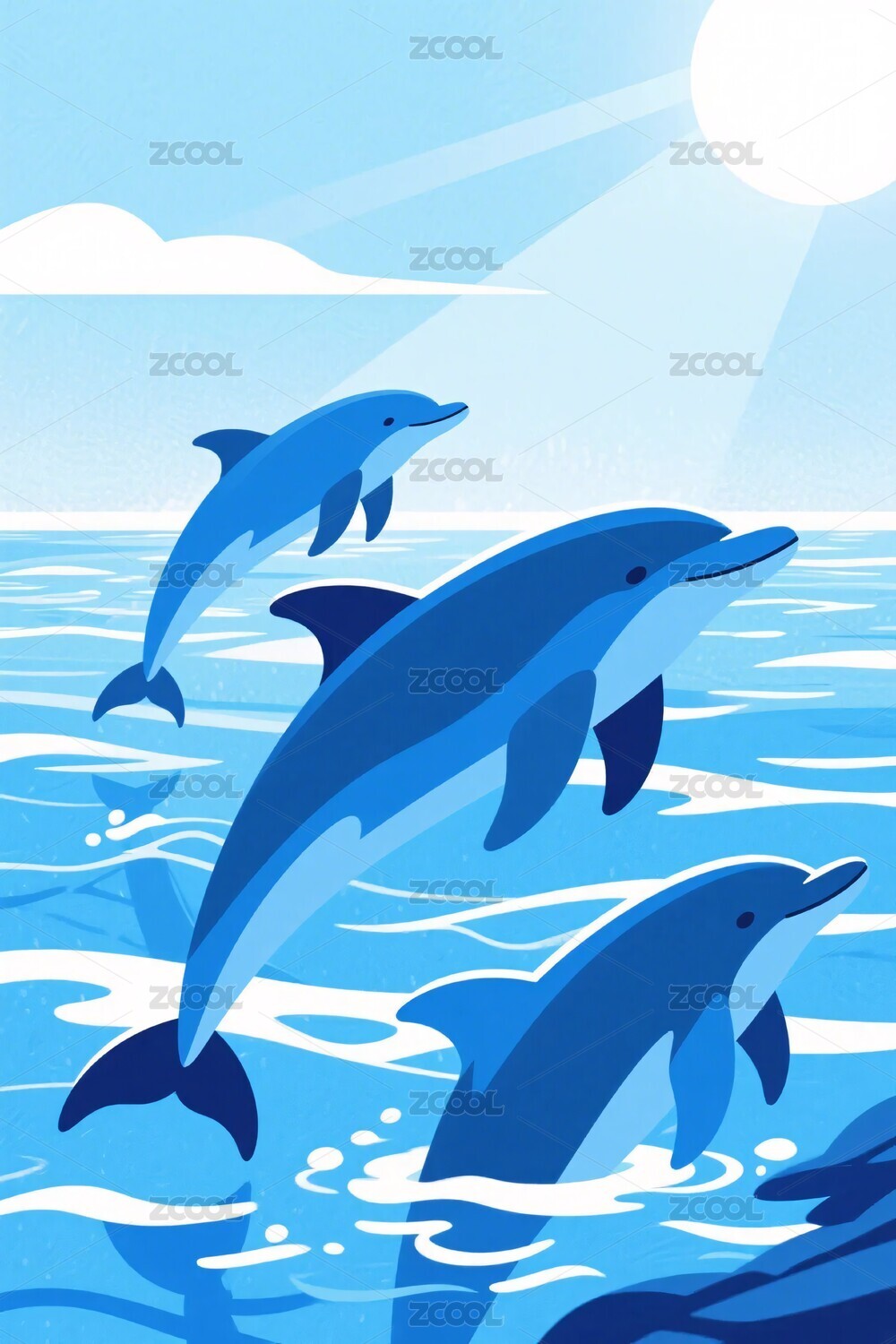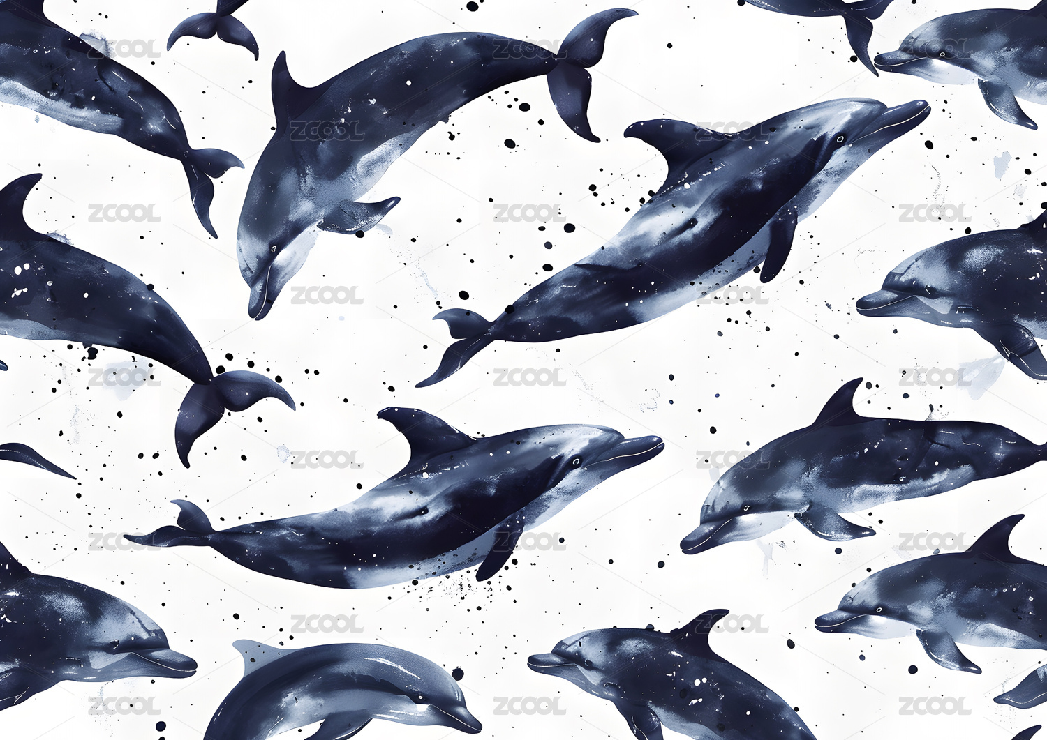 海豚,线条,插画,图案,花纹,蓝色,蓝黑色,儿童用品,服饰,卡通图案