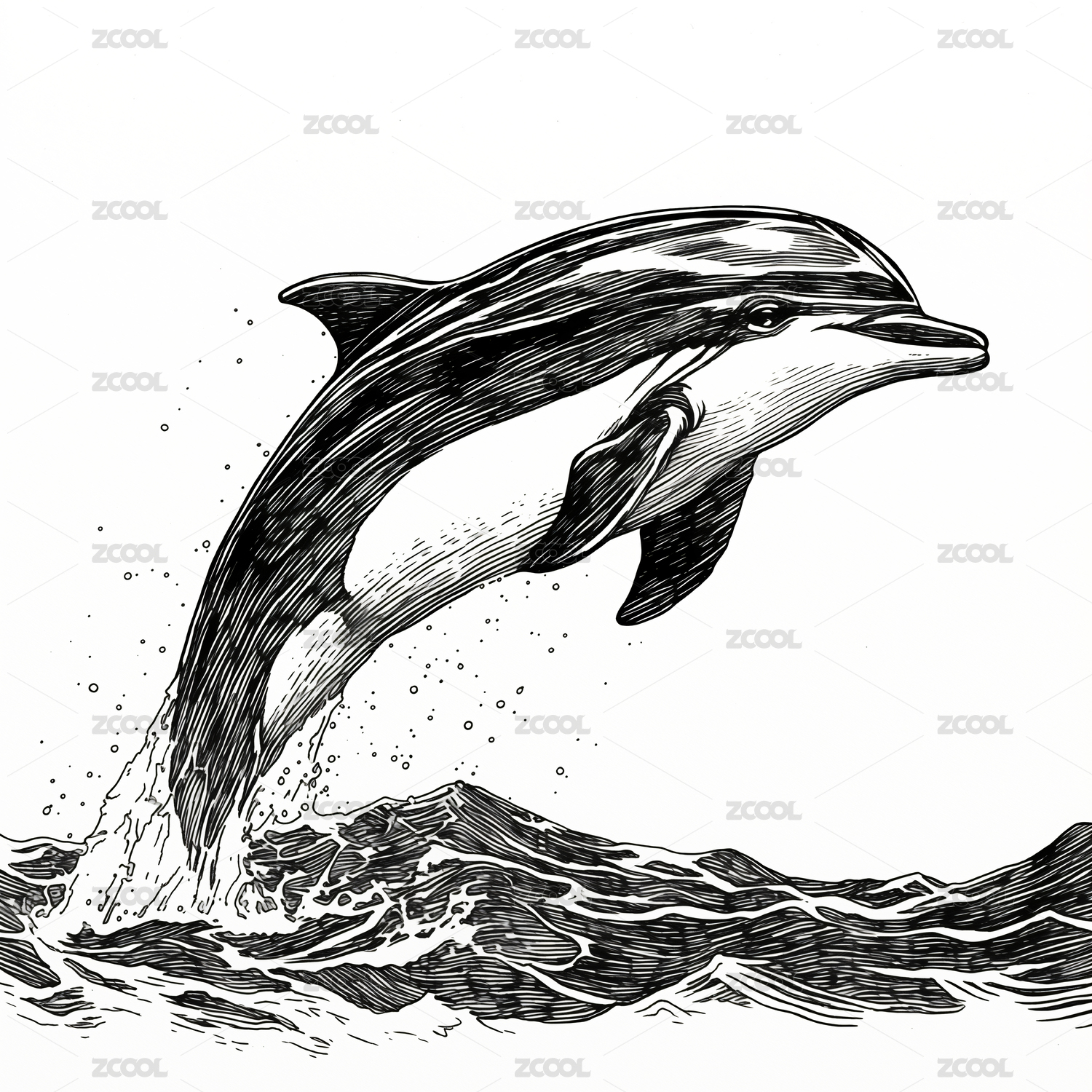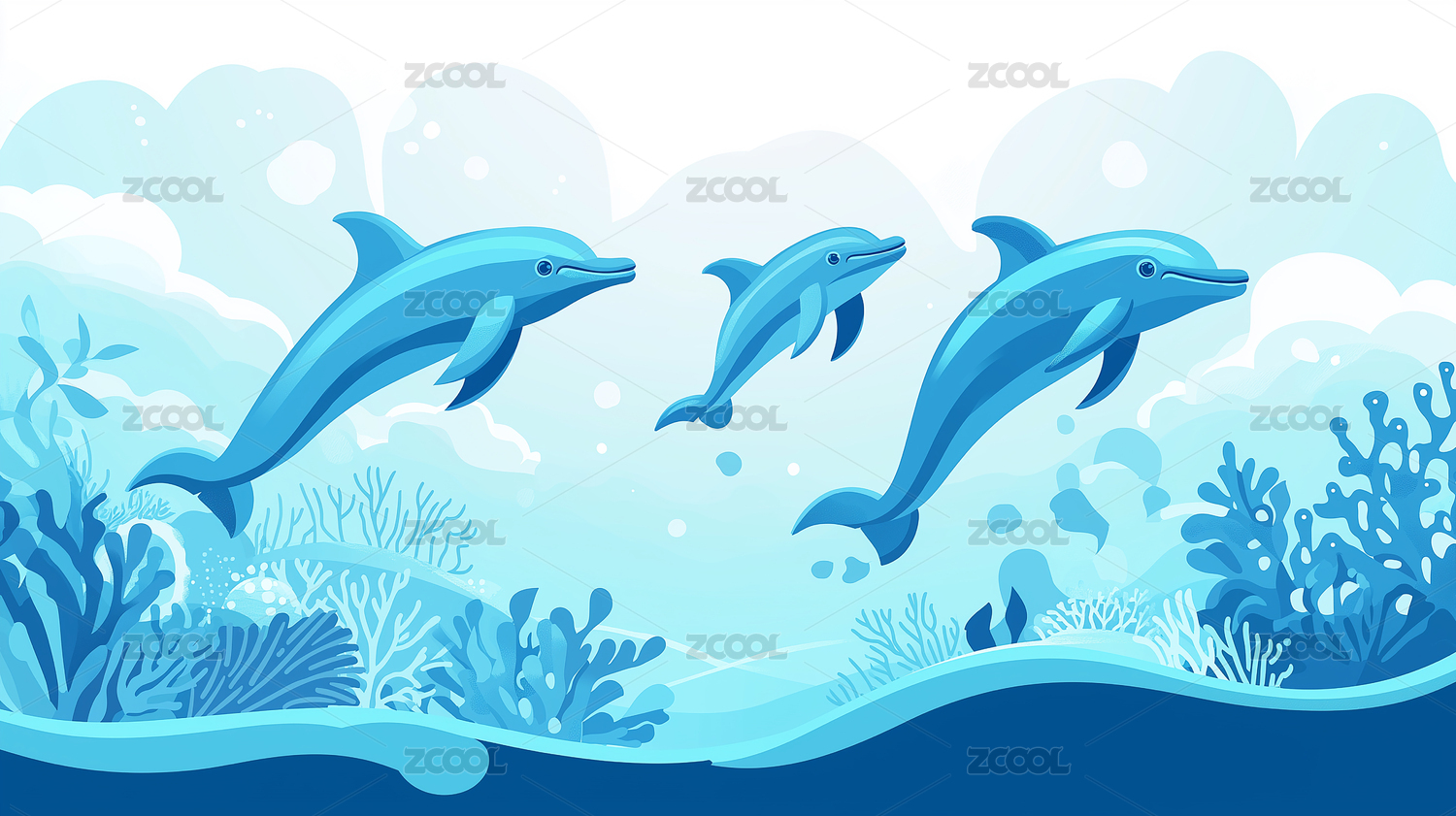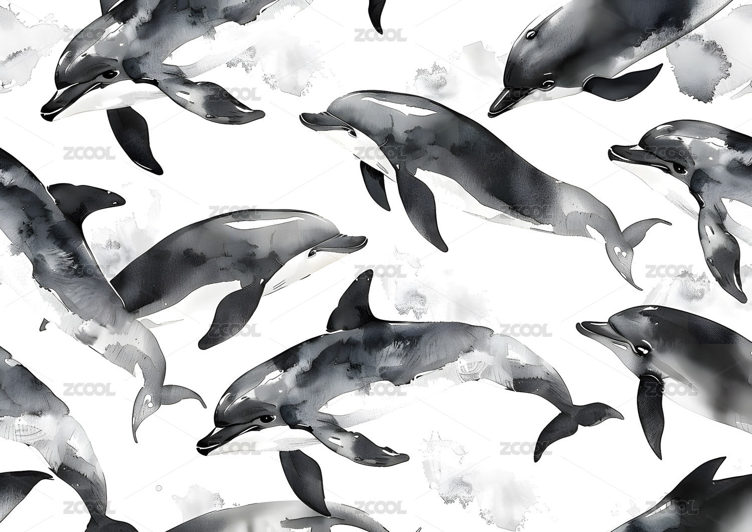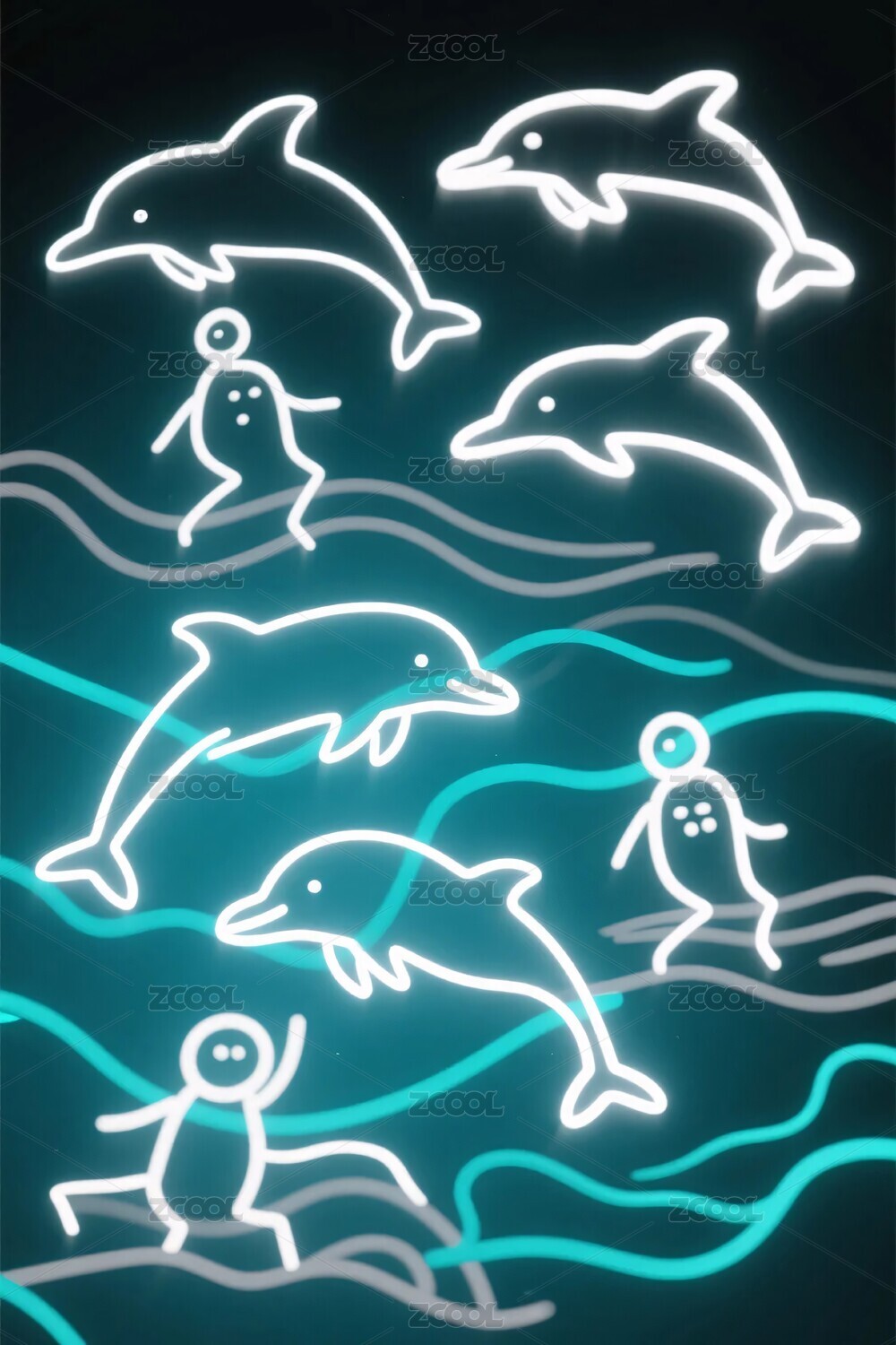 海豚,线条,插画,图案,花纹,蓝色,蓝黑色,儿童用品,服饰,卡通图案