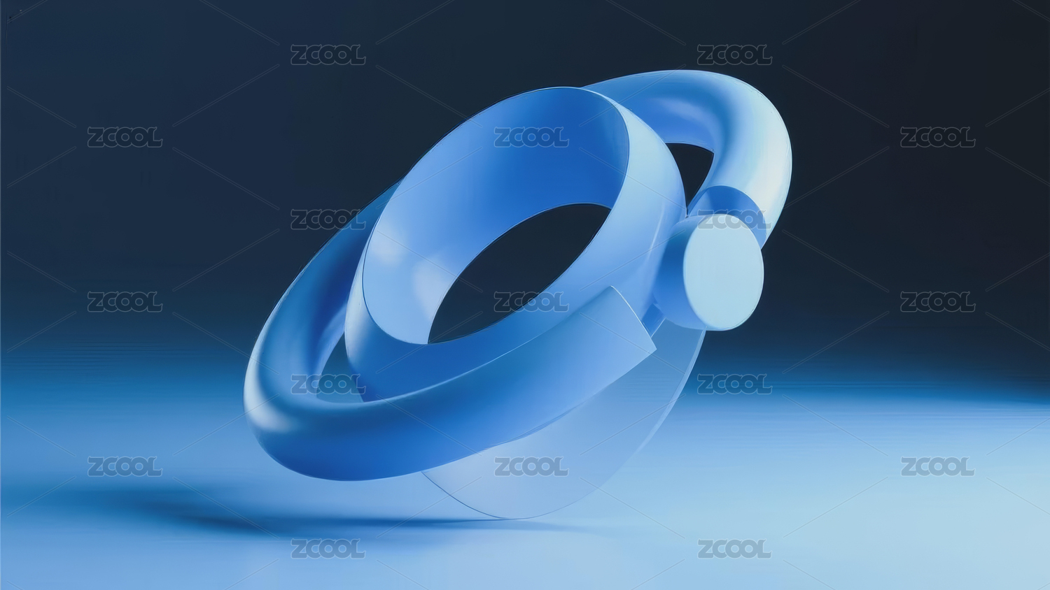 清新透明蓝底抽象浅蓝色圆环3D立体插画