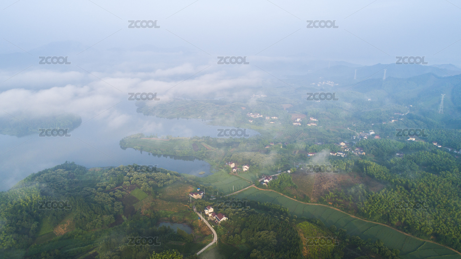 航拍中国安徽宣城市郎溪县天子湖云雾风光