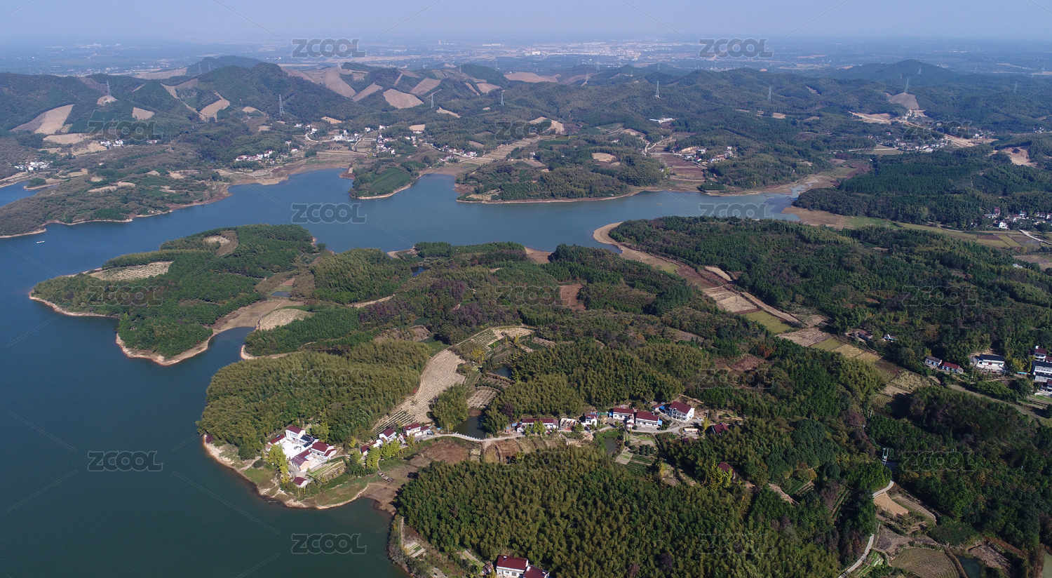 航拍中国安徽宣城郎溪县天子湖湖畔风光