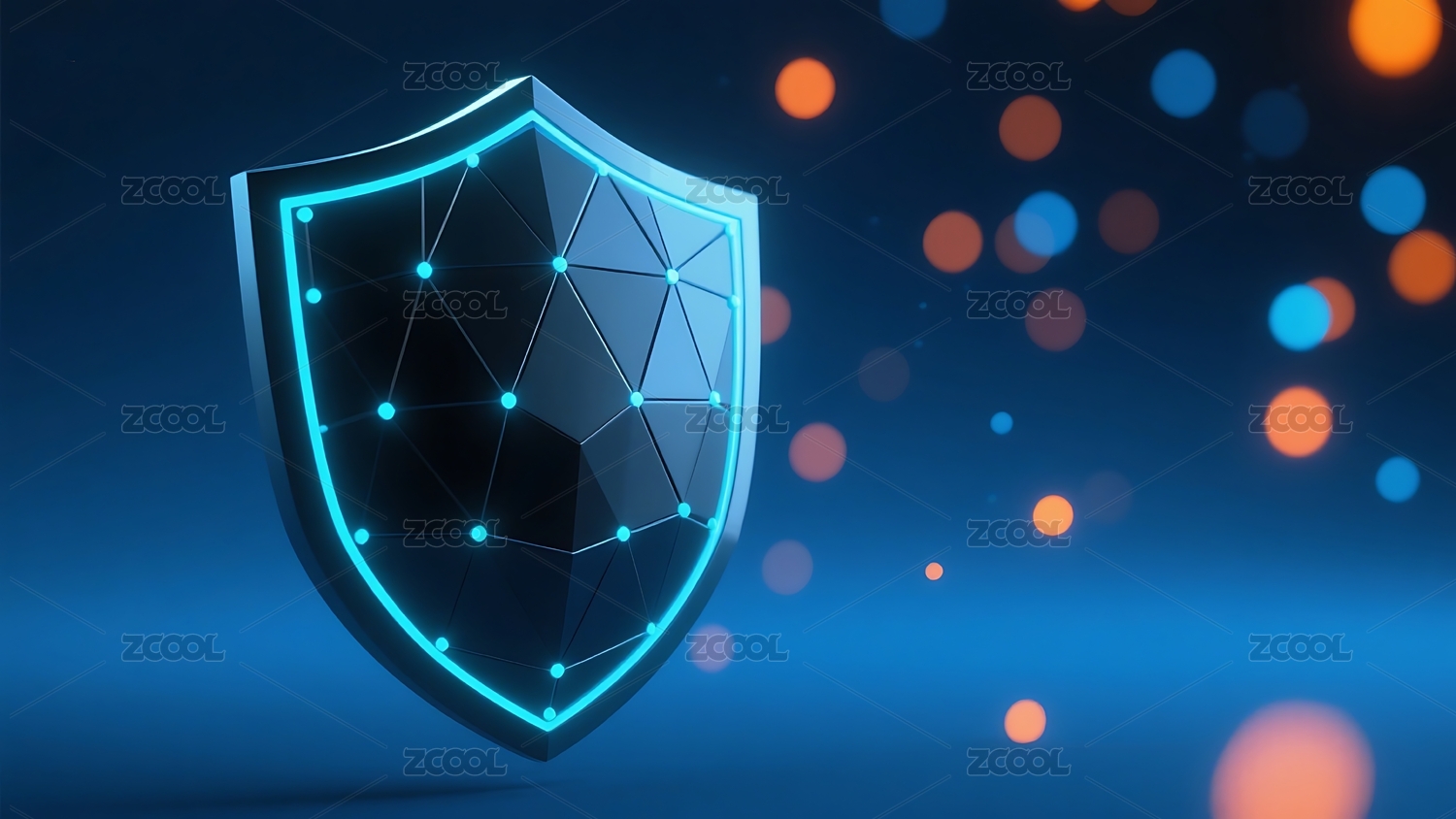网络安全数据护盾全息色彩3D插画