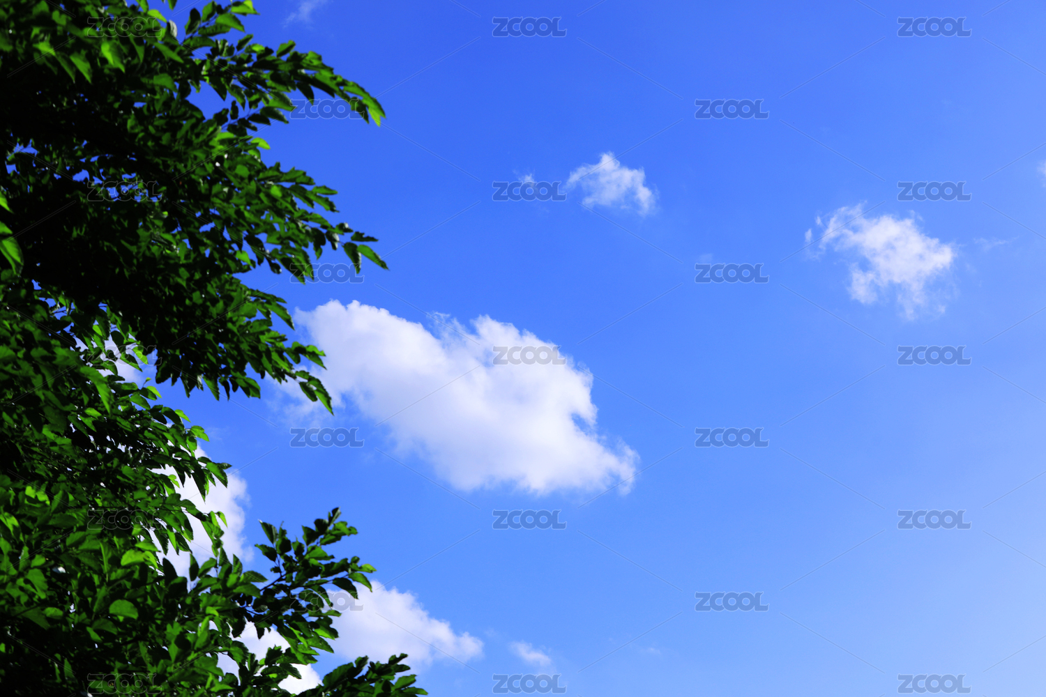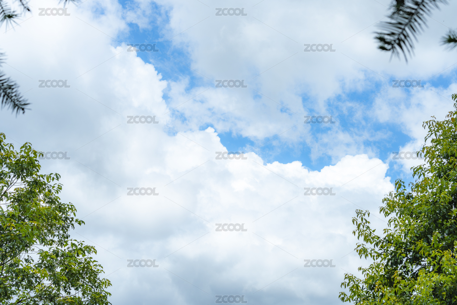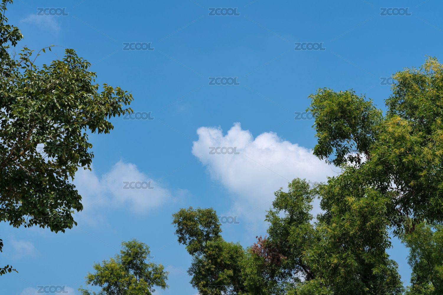 蓝天白云背景下的绿色植物群