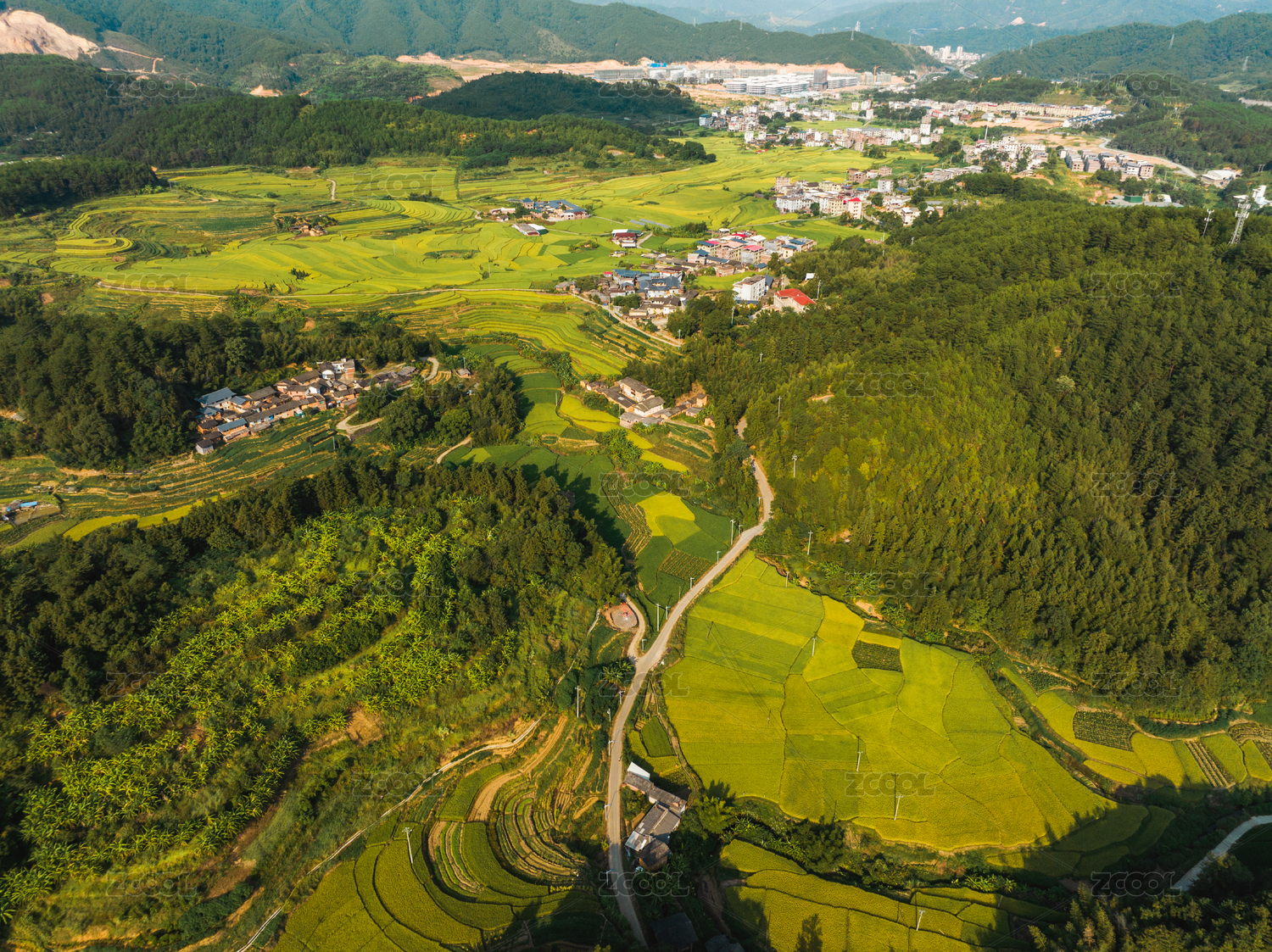 中国福建省顺昌县慈太村稻田航拍风光