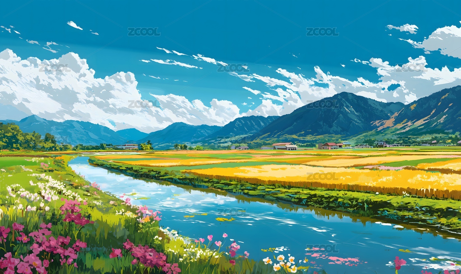 浮世绘,复古,插画,插图,传统,文化,艺术,风景,背景,美丽