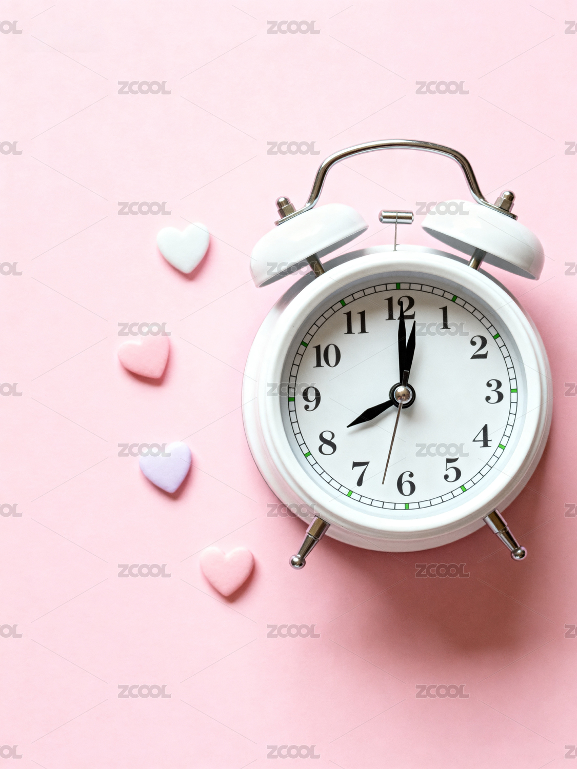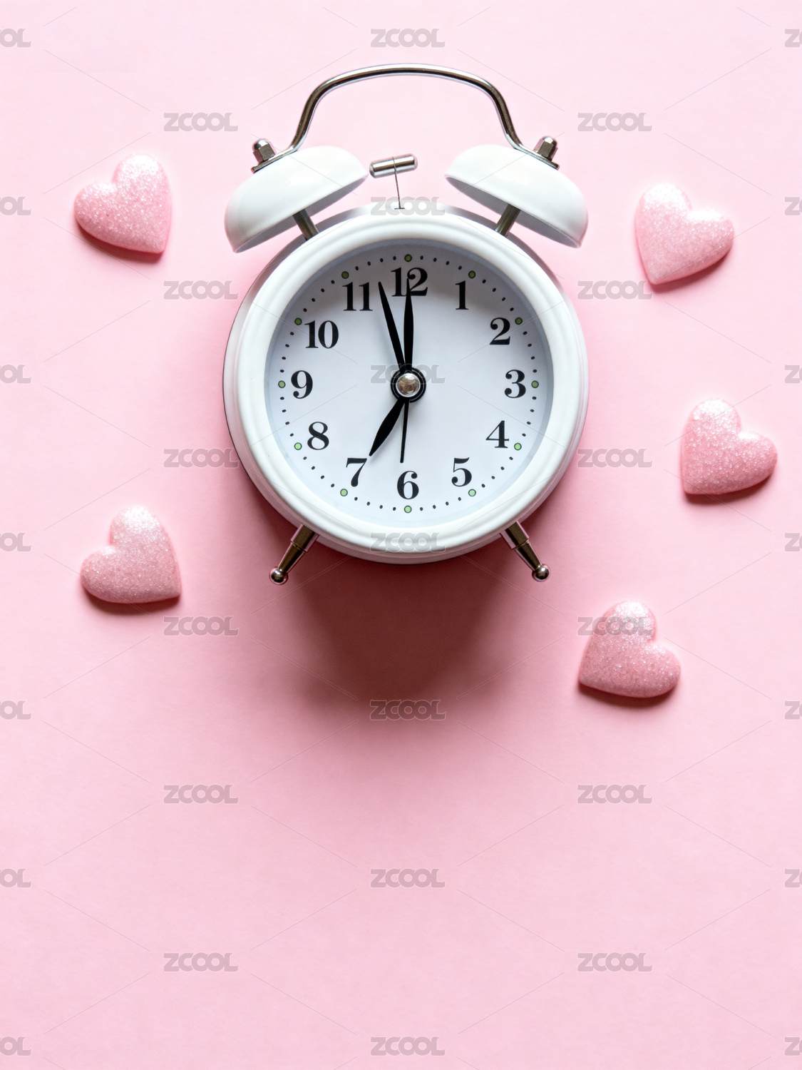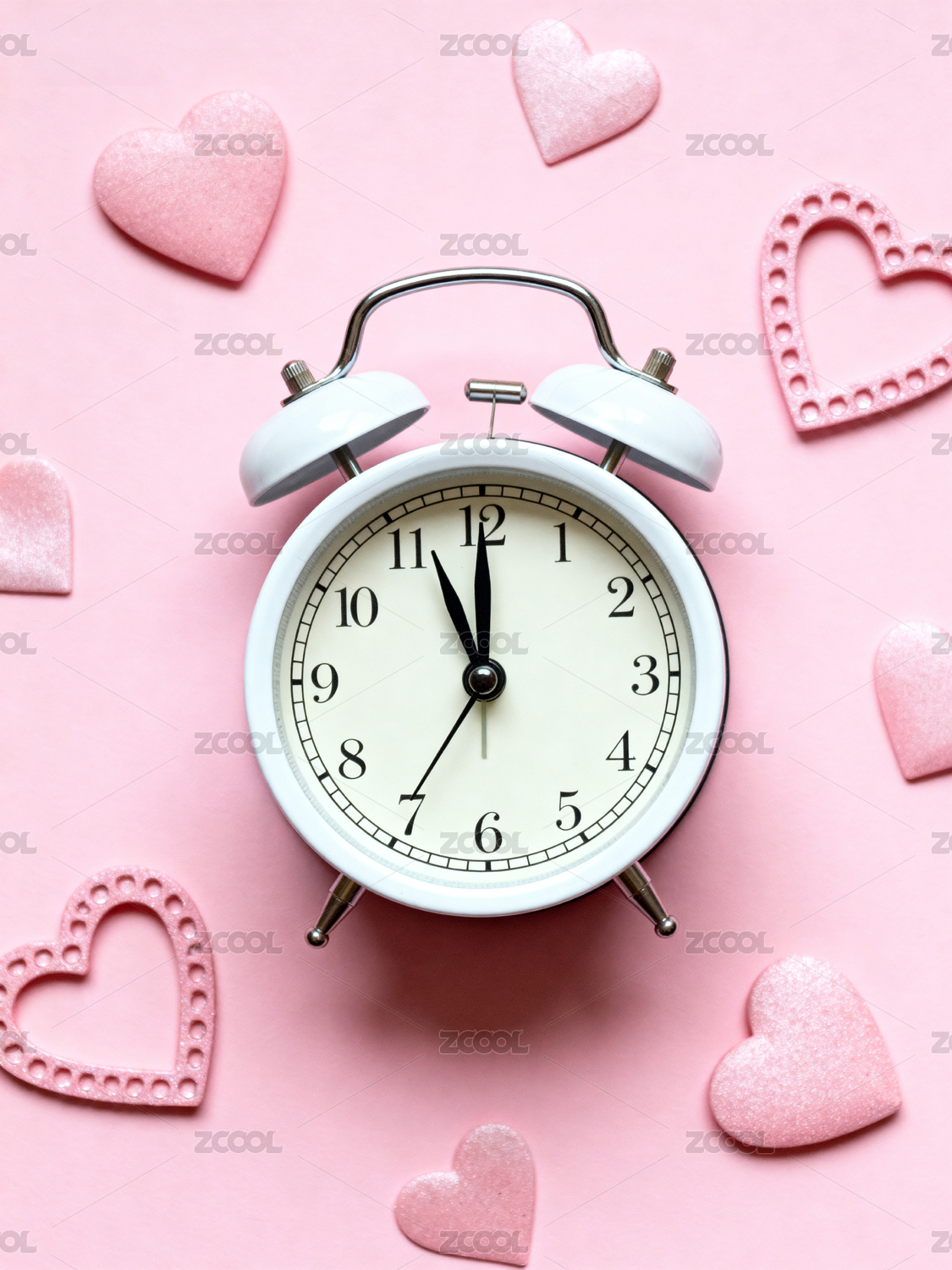 情人节粉色背景中的闹钟倒计时活动促销图标