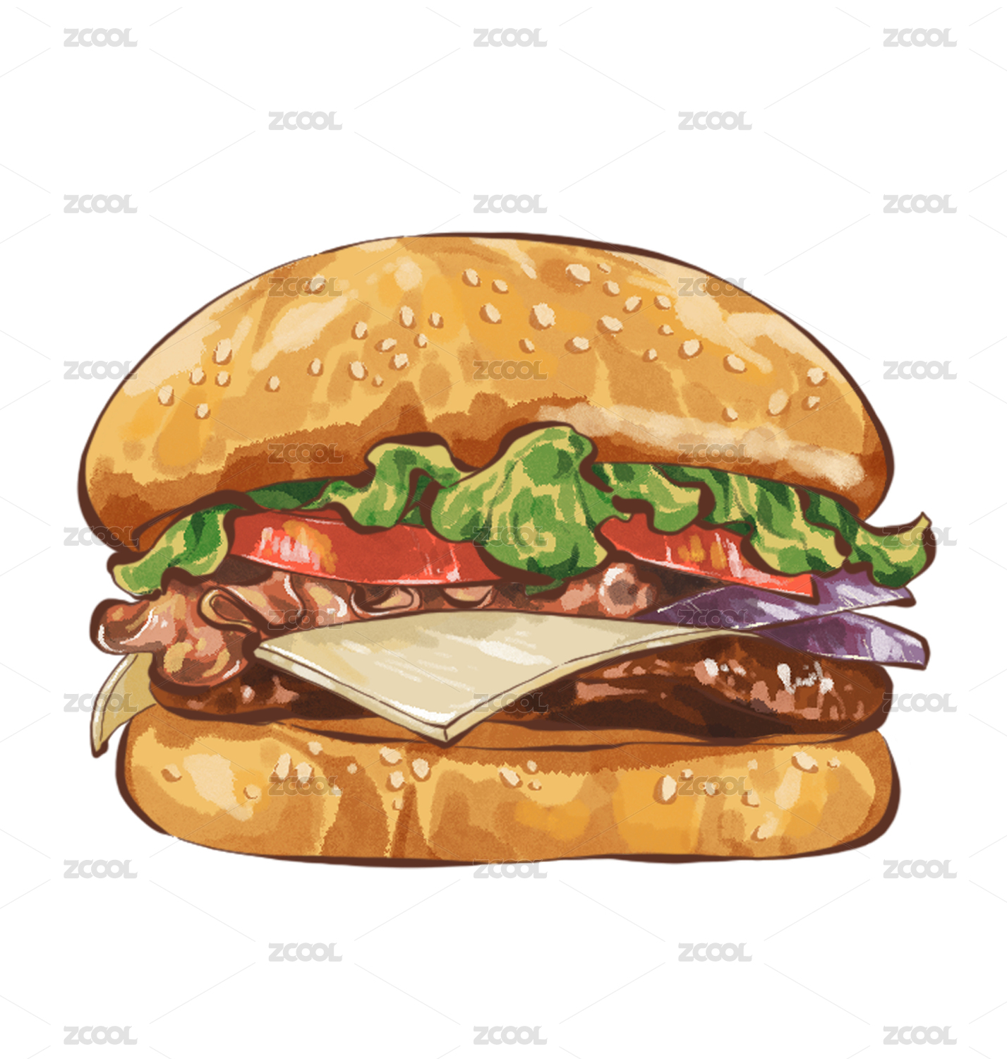 汉堡包插画夏季减肥不健康快餐美食场景插图