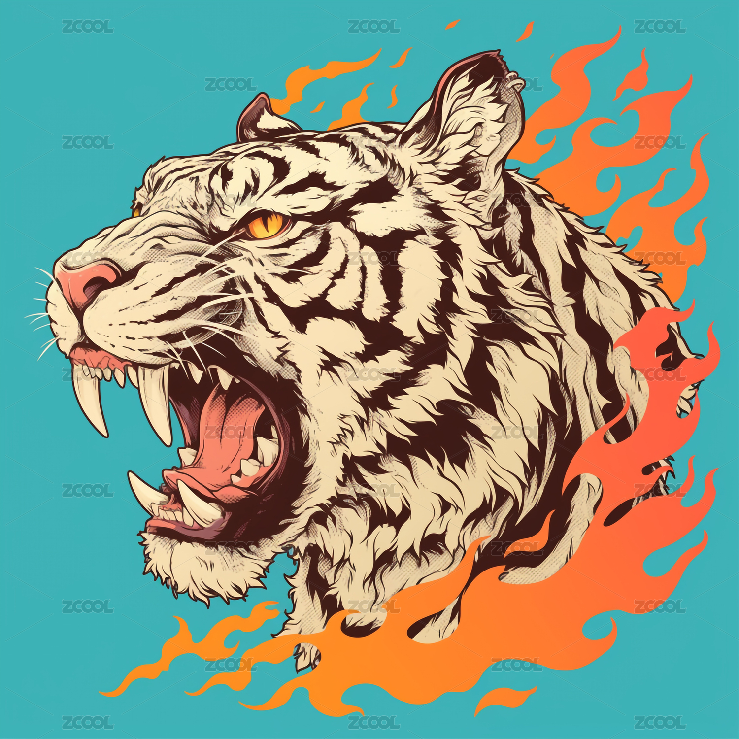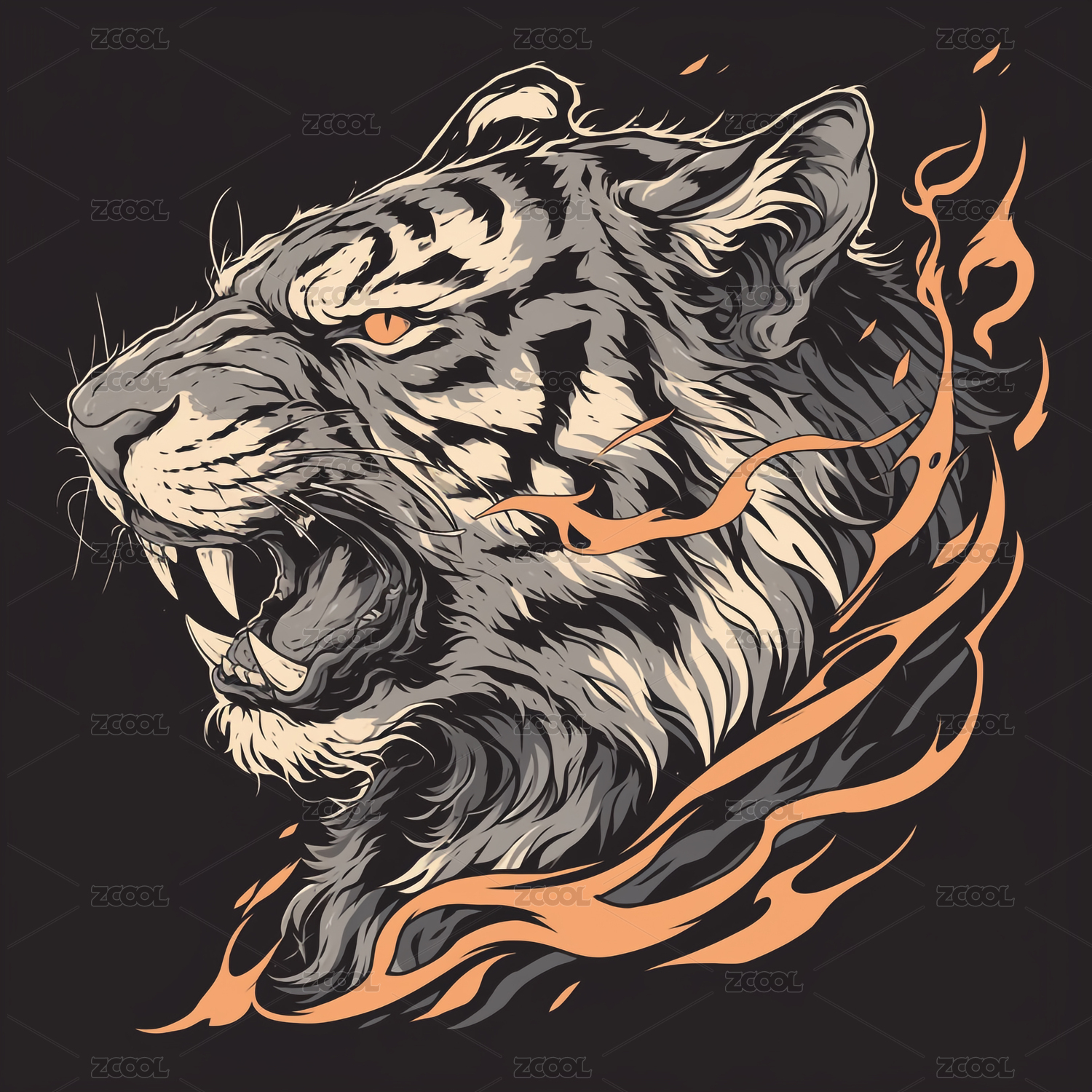 老虎,东北虎,火焰,摇滚,北美,复古,美式,暗黑,潮流,嘻哈